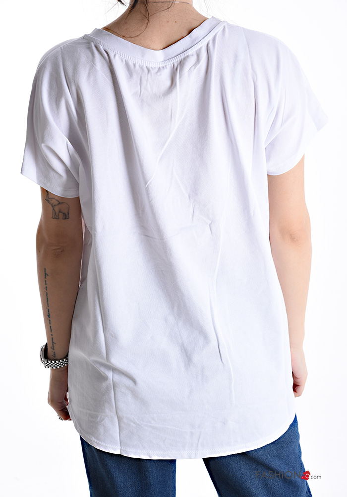 Home > Abbigliamento > T-shirts e Top > T-shirt in Cotone maniche corte girocollo Fantasia cuore con paillettes