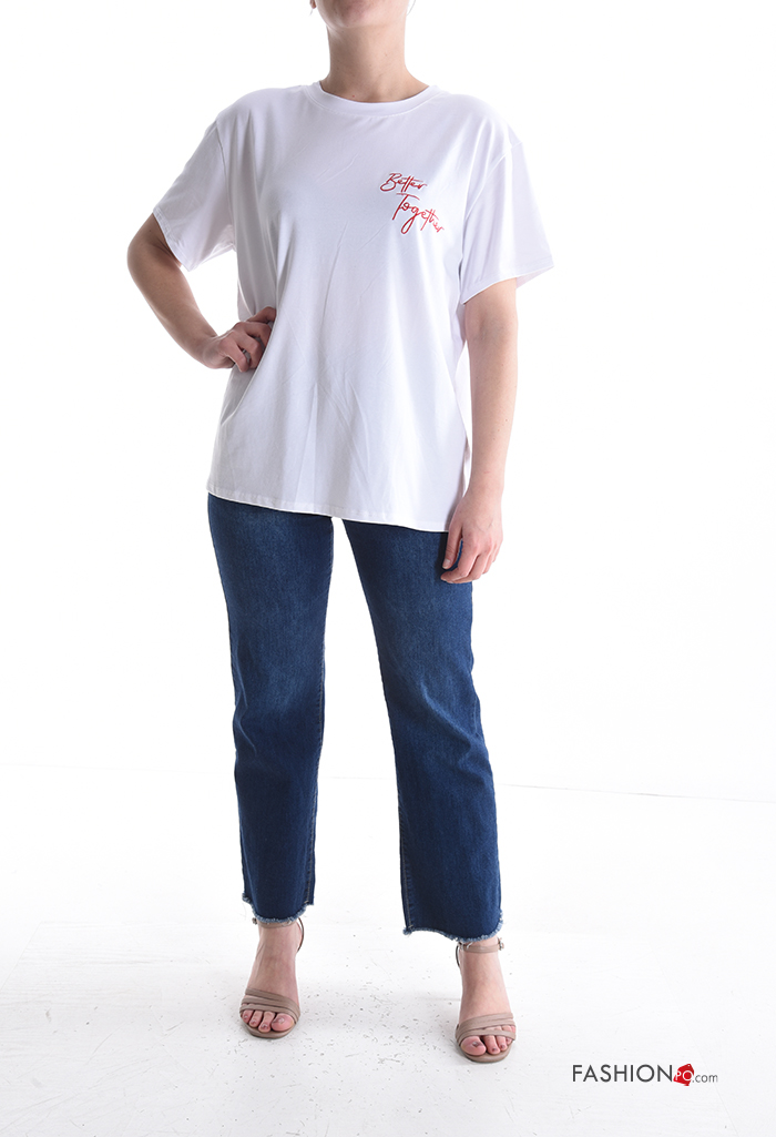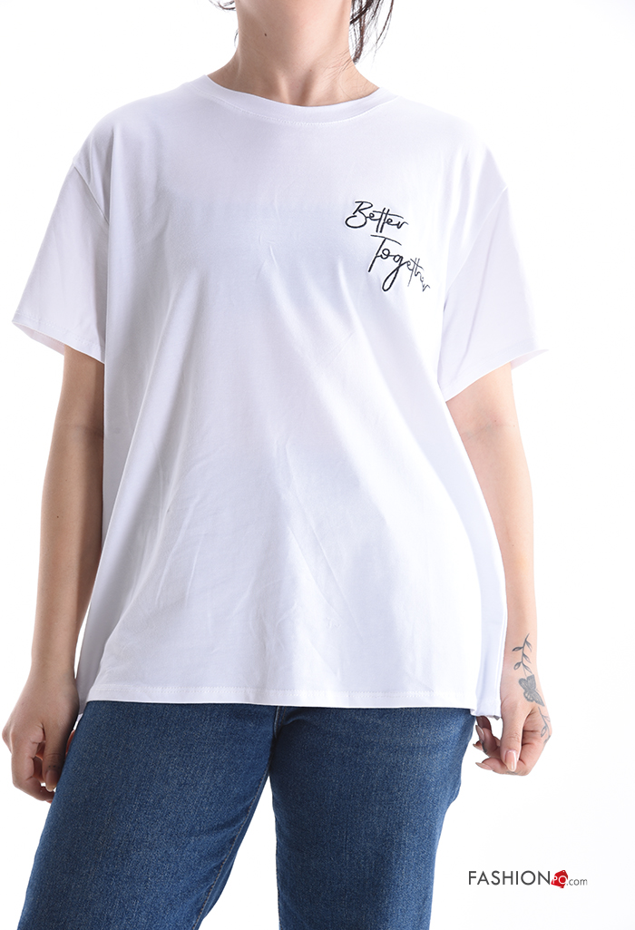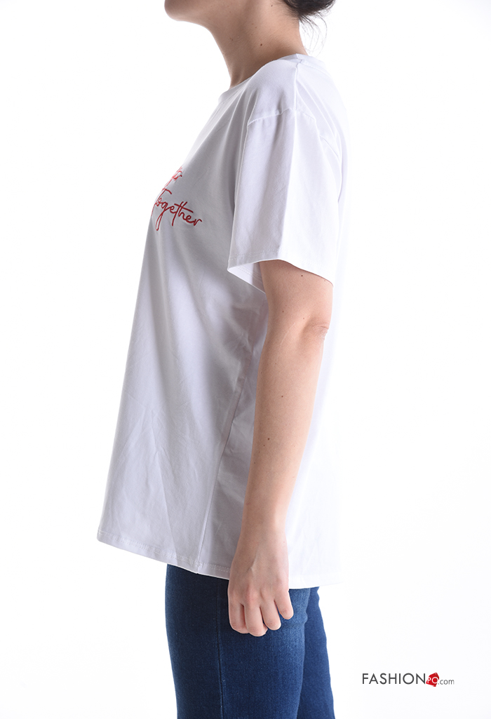 T-shirt in Cotone maniche corte girocollo Fantasia scritta