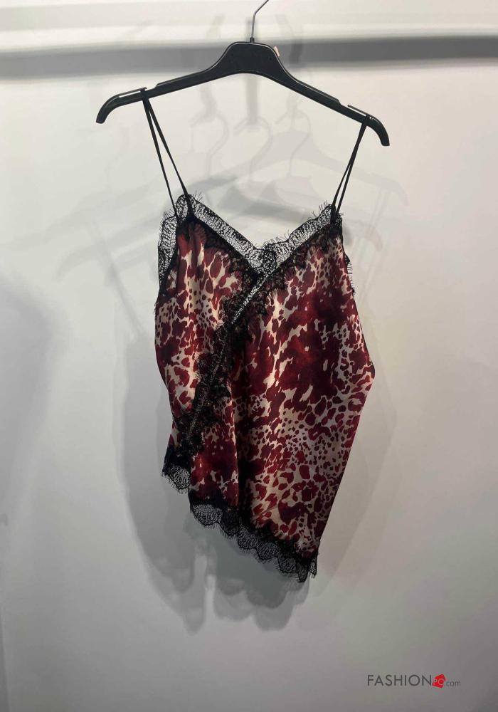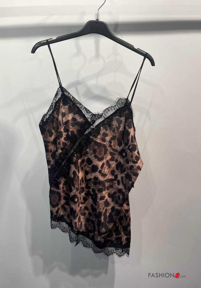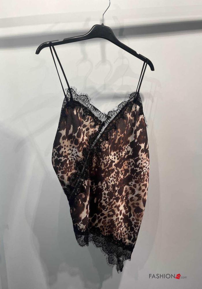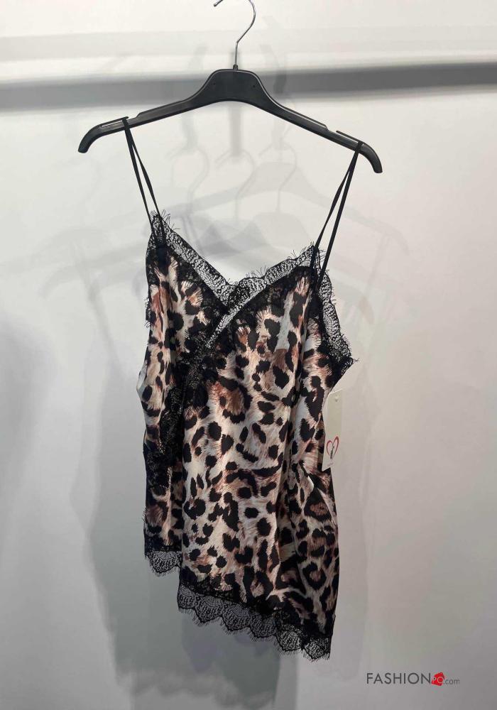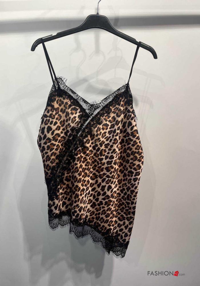 Top pizzo scollato sulla schiena asimmetrico senza maniche raso Fantasia animalier