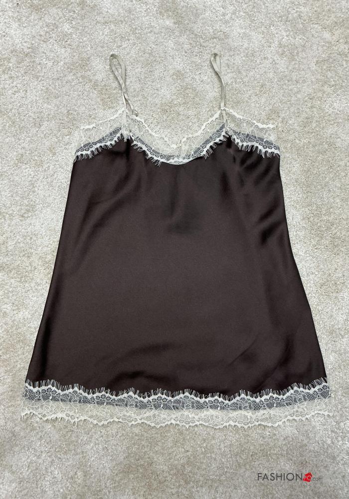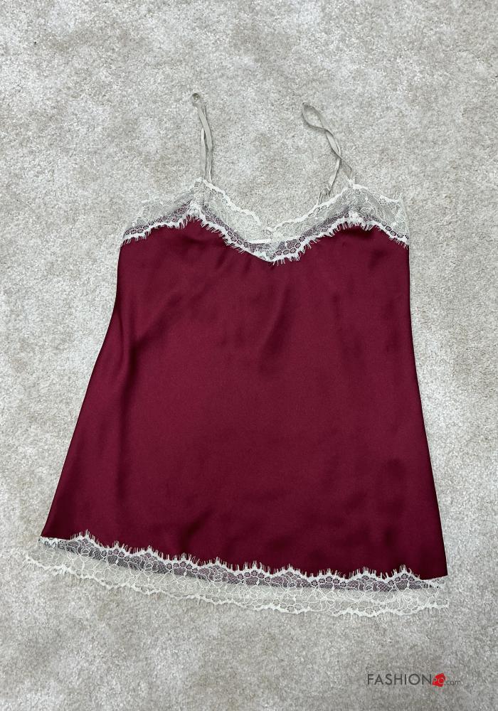 Top senza maniche regolabile pizzo raso
