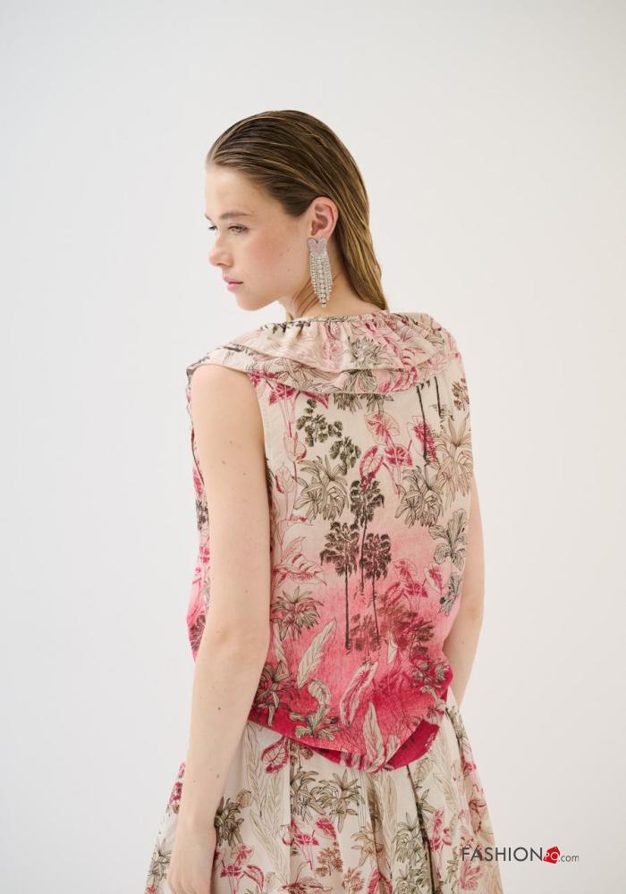 Home > Abbigliamento > T-shirts e Top > Top in Cotone senza maniche Fantasia floreale con balze scollo a V