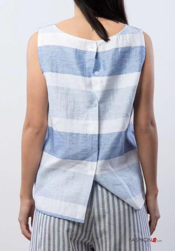 Top in Lino Fantasia righe con bottoni