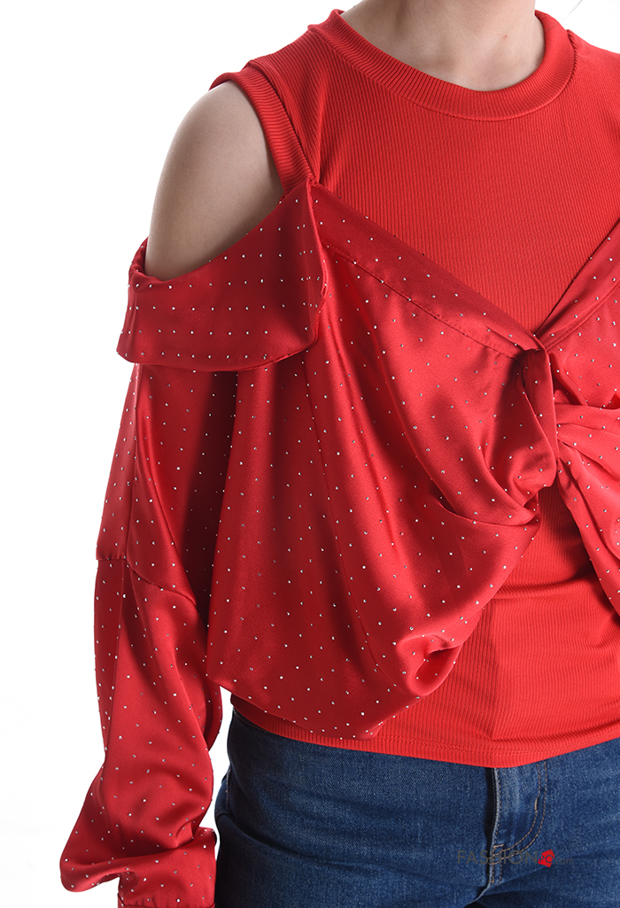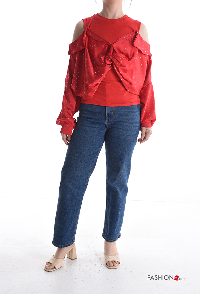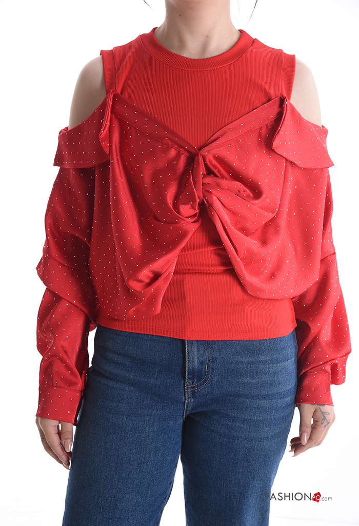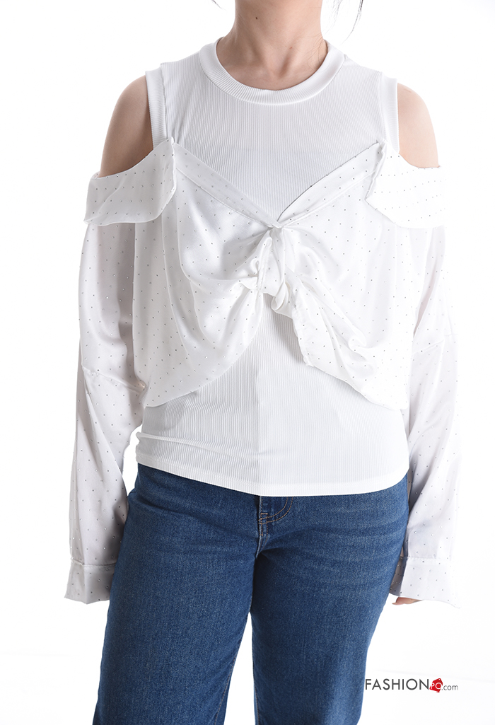 Top maniche lunghe girocollo con strass