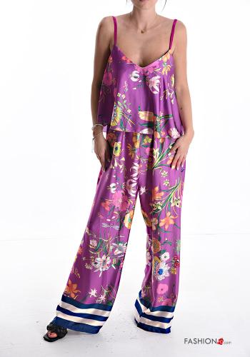 Coordinato scollato sulla schiena wide leg raso senza maniche Fantasia floreale scollo a V con elastico