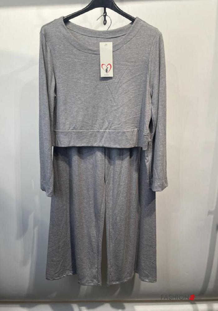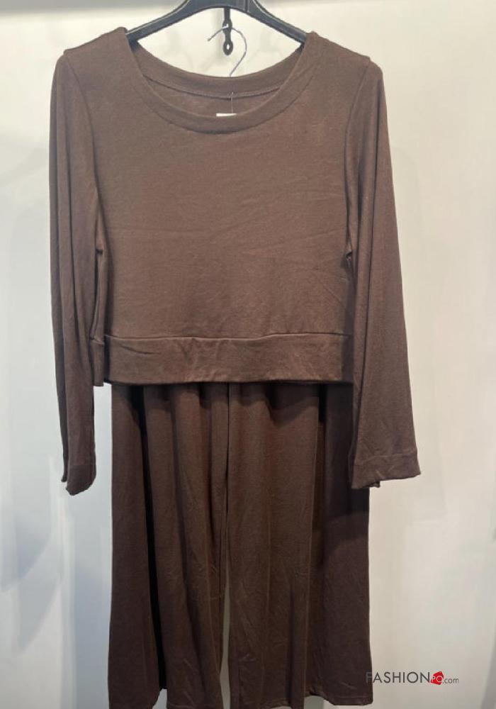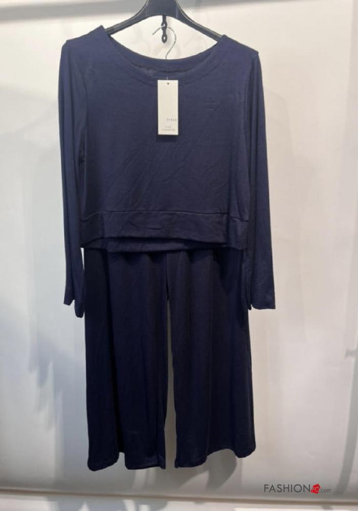 Coordinato wide leg maniche lunghe girocollo con elastico