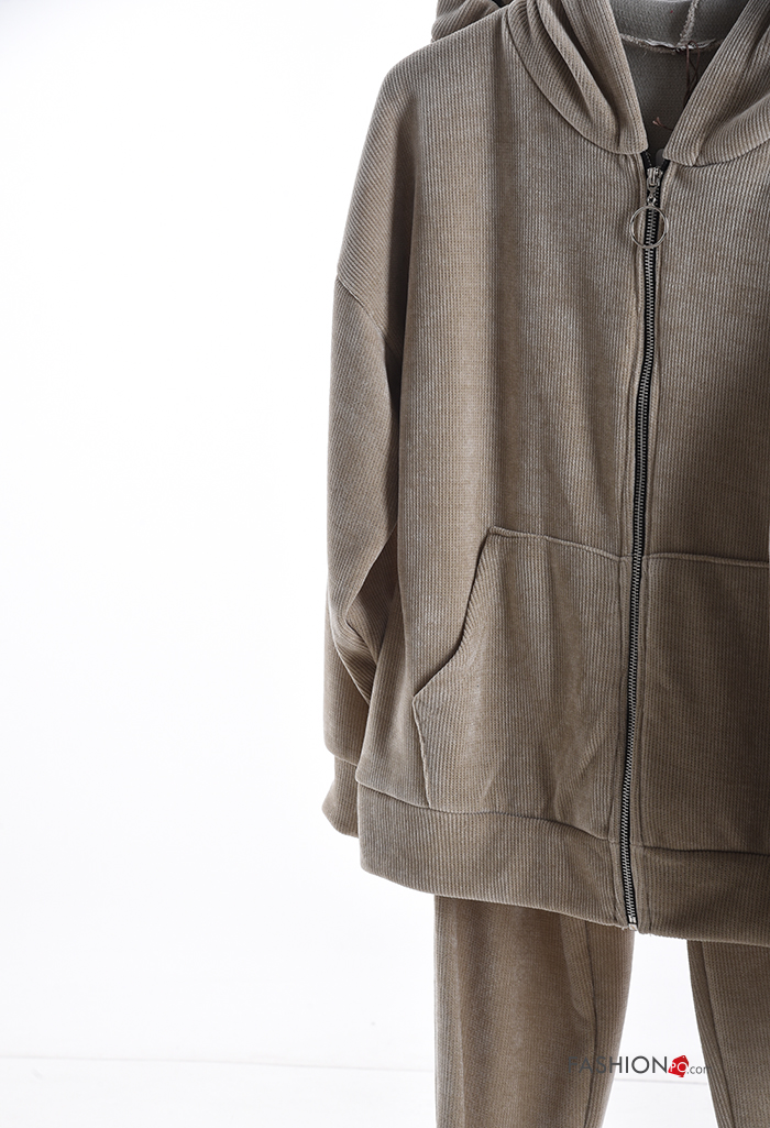Home > Abbigliamento > Tailleur e Coordinati > Coordinato con elastico con cappuccio con tasche con zip