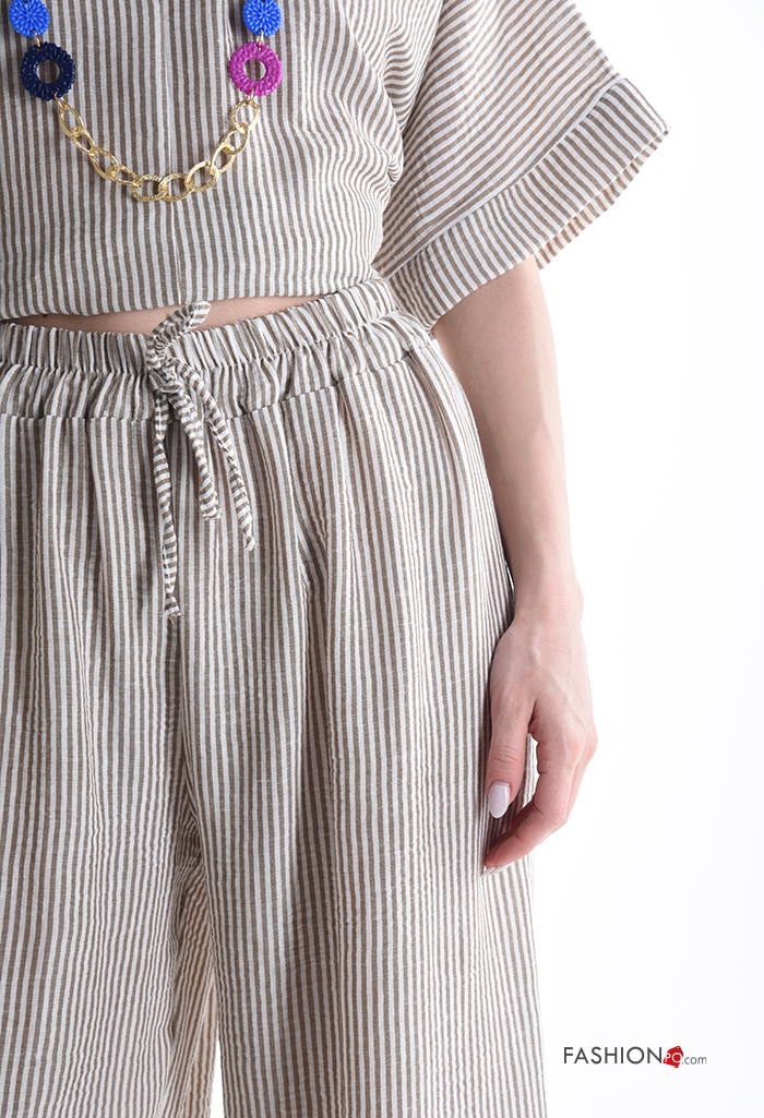 Coordinato maniche corte con colletto Fantasia righe con bottoni con elastico