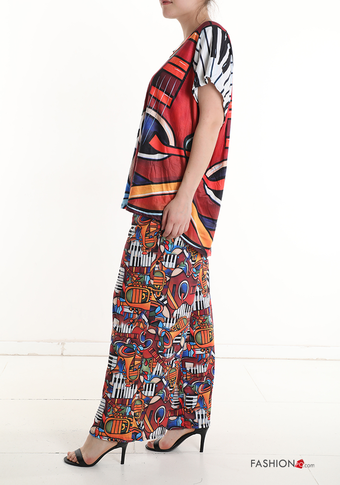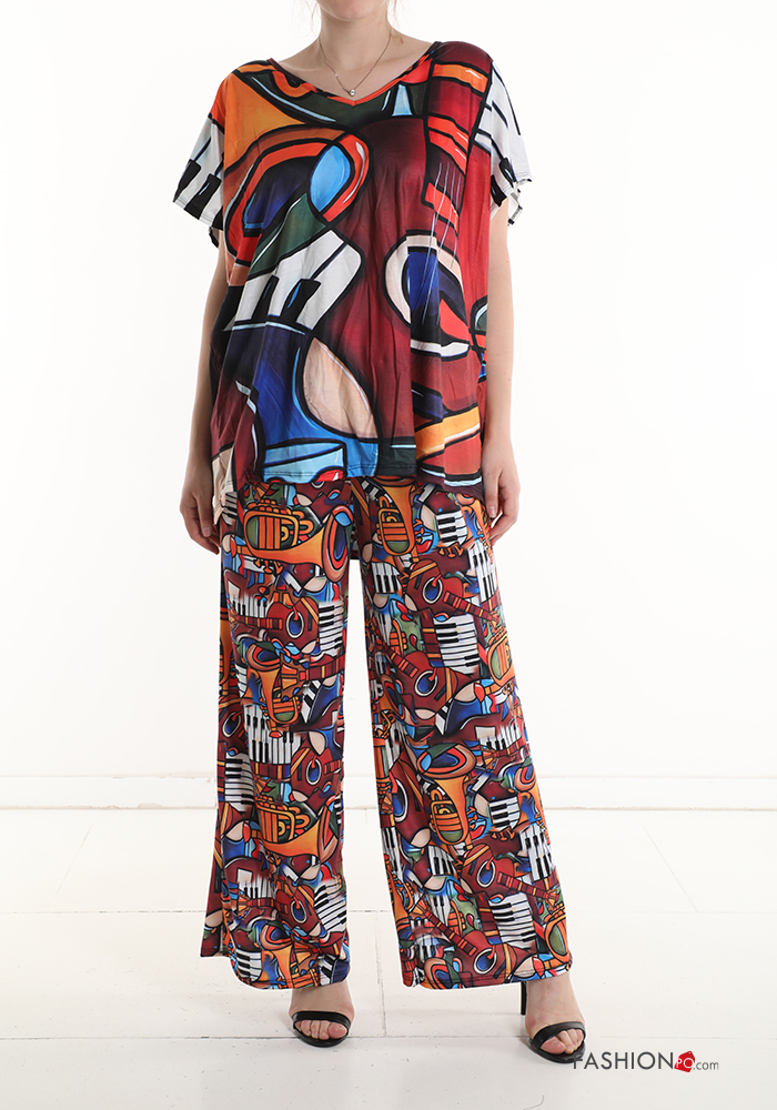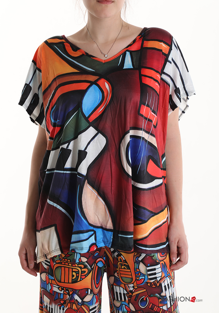 Coordinato in Cotone maniche corte Fantasia astratta scollo a V