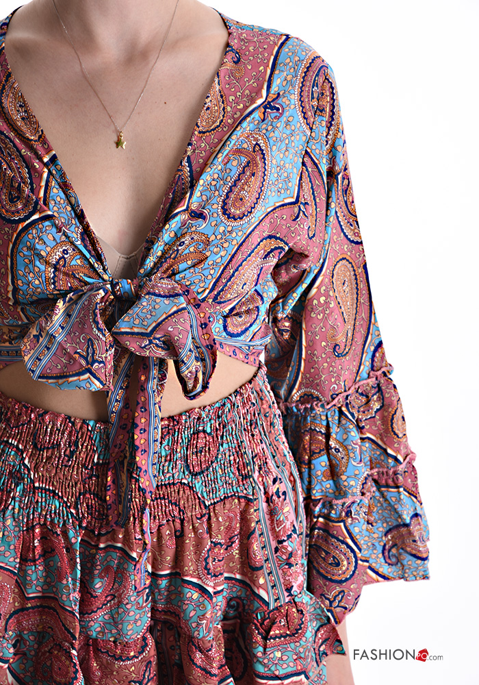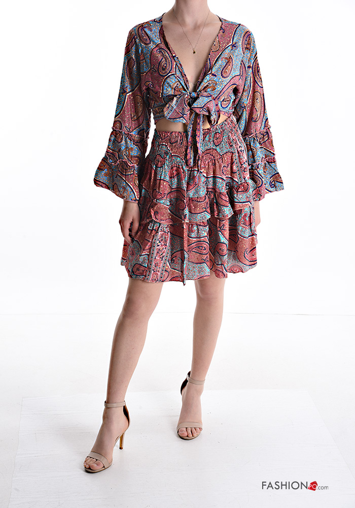 Coordinato in Seta Fantasia jacquard con balze con elastico