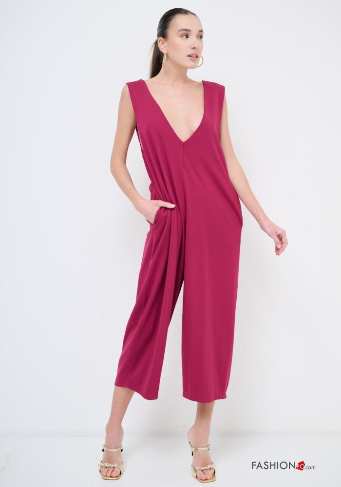Jumpsuit senza maniche scollato sulla schiena con tasche scollo profondo