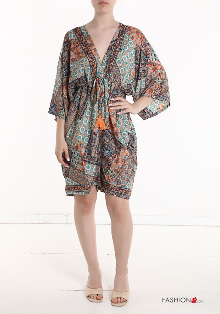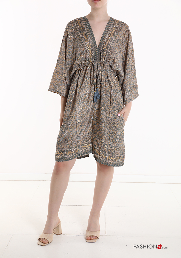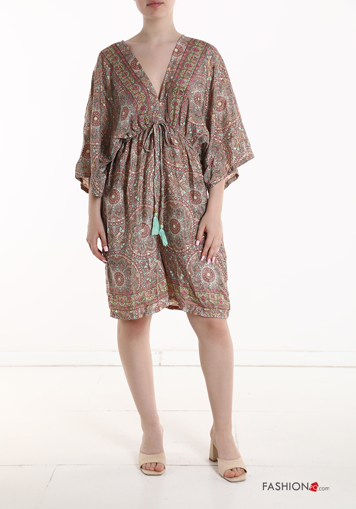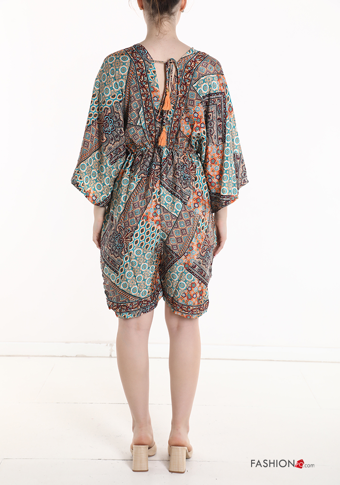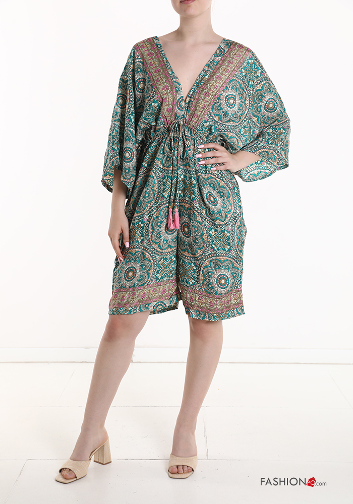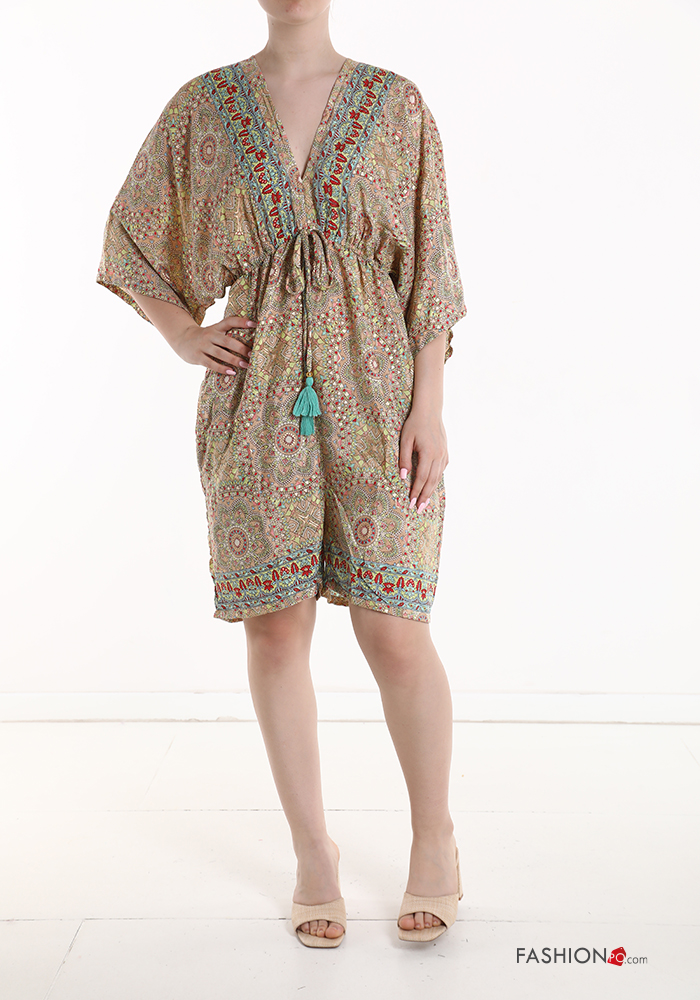 Jumpsuit in Seta maniche corte Fantasia stampata scollo a V