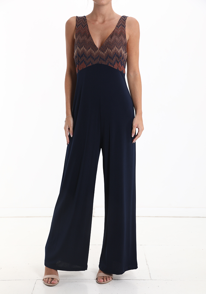 Jumpsuit senza maniche wide leg Fantasia chevron scollo a V