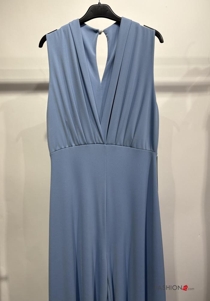 Jumpsuit maniche corte wide leg scollo a V scollo profondo