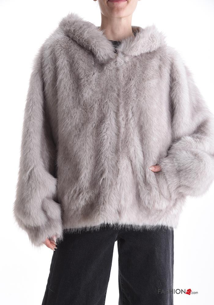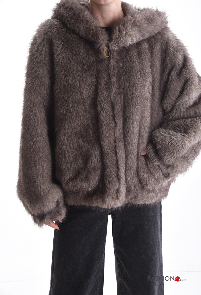 Home > Brands > RENAI MODA > Blusão pelo sintético sem forro com capuz com fecho com bolsos
