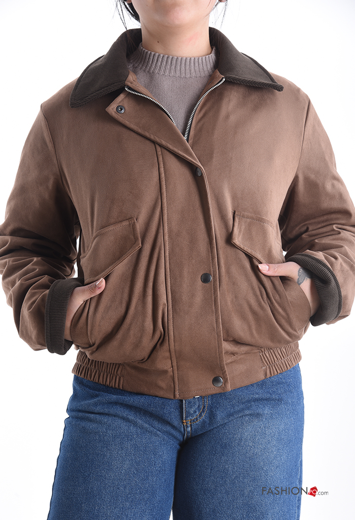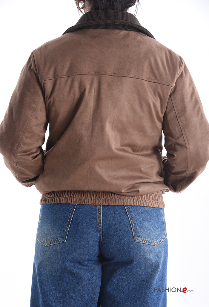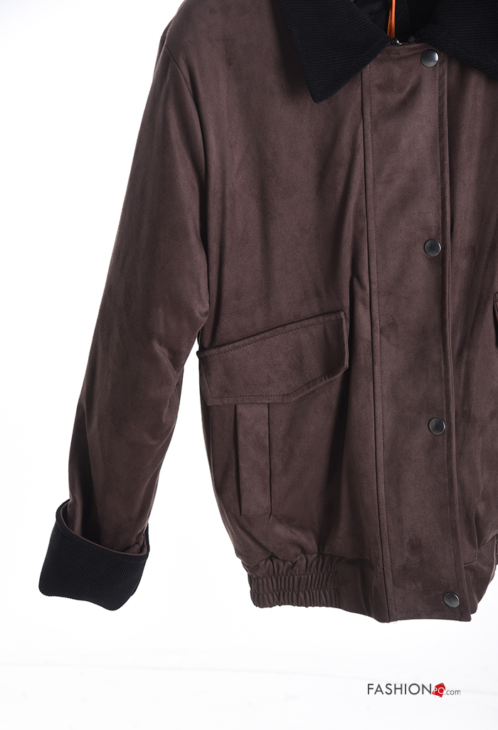 Blusão Bomber com gola com forro com fecho com bolsos com botões