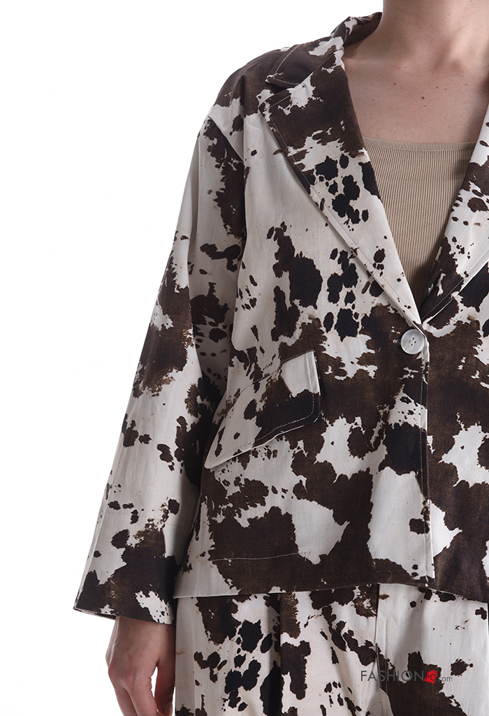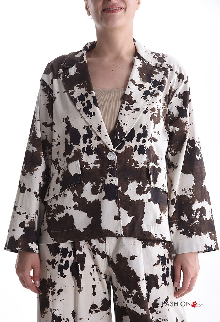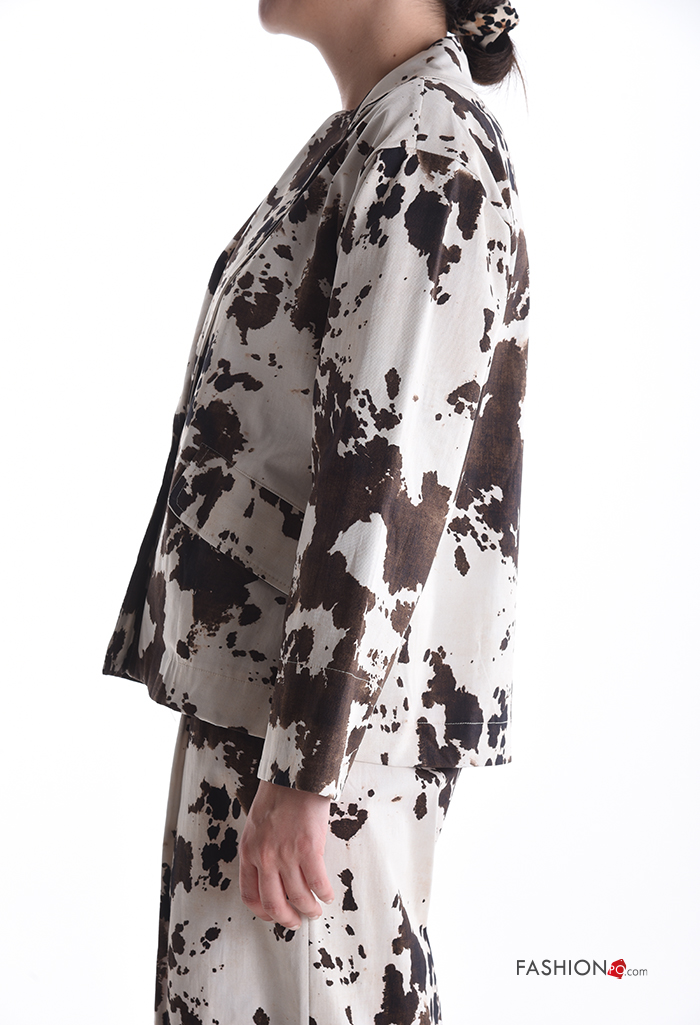 Home > Roupa > Blusões & Casacos > Blusão em Algodão manga comprida Padrão animal com botões sem forro