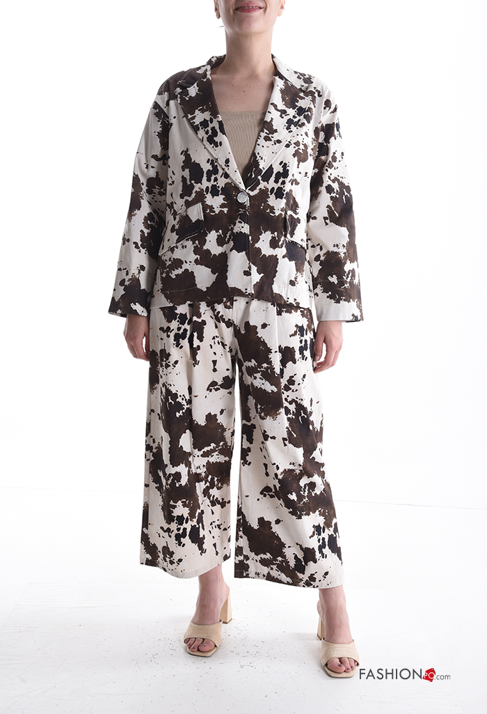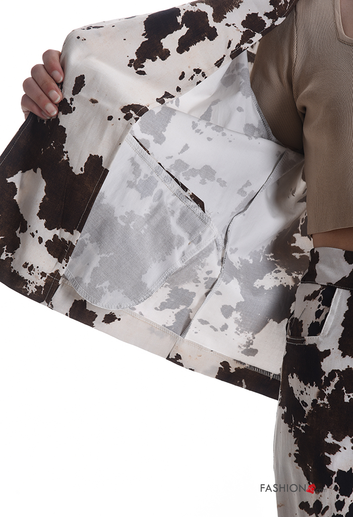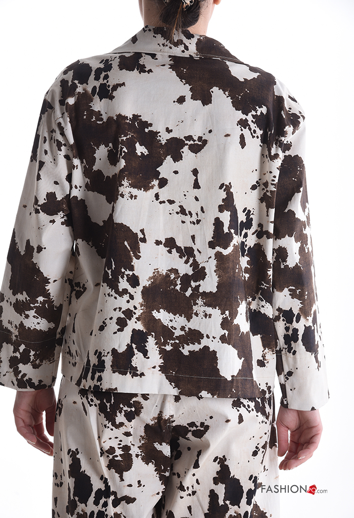 Blusão em Algodão manga comprida Padrão animal com botões sem forro