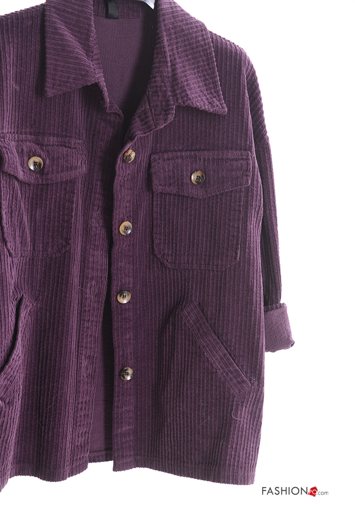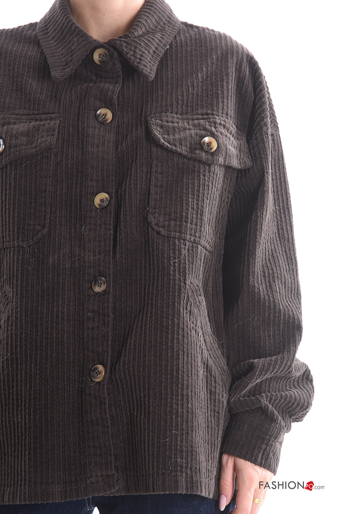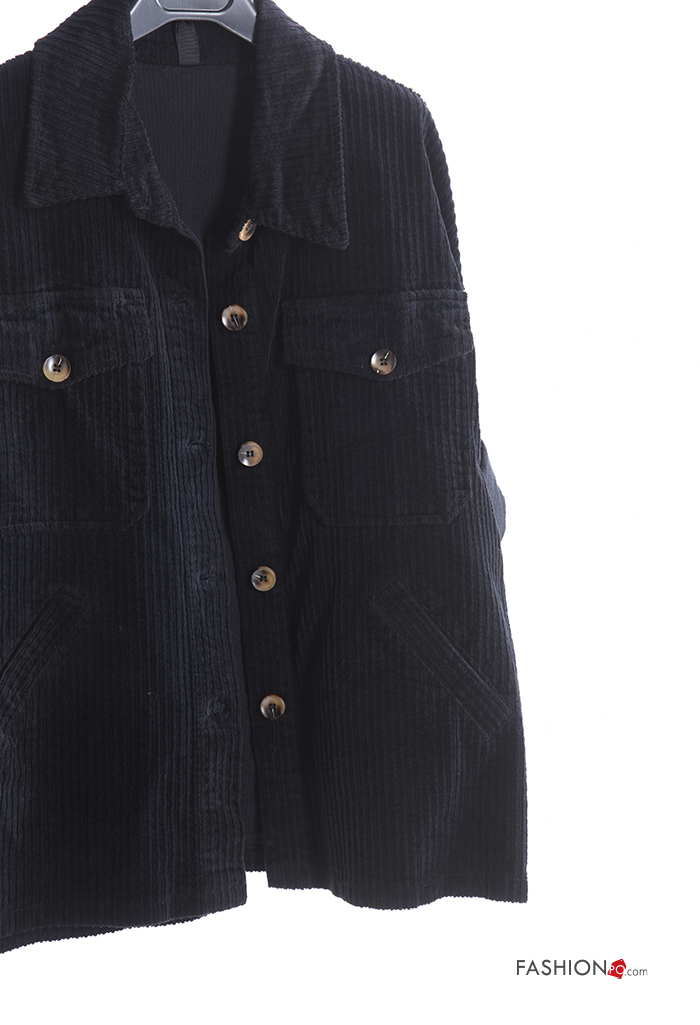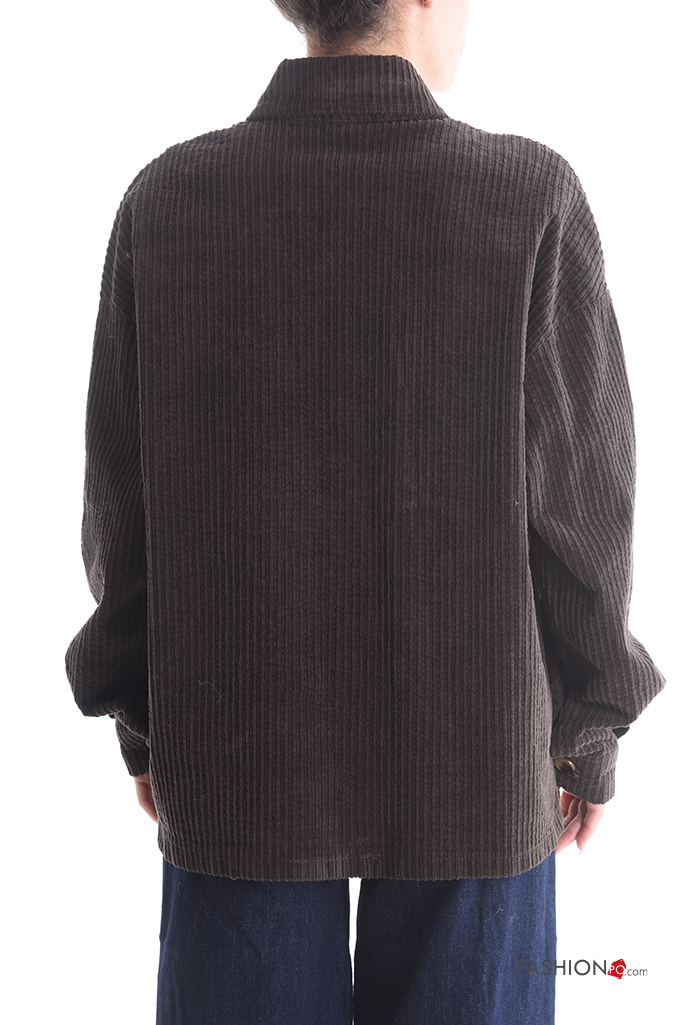 Blusão em Algodão com gola manga comprida em jersey canelado de veludo com botões com bolsos