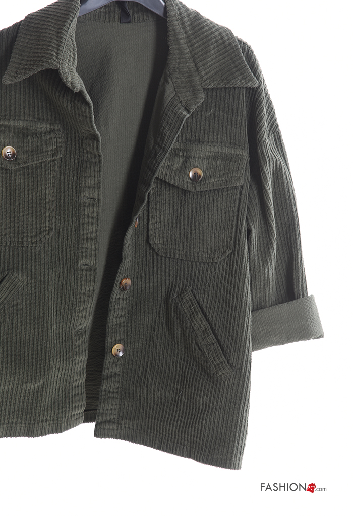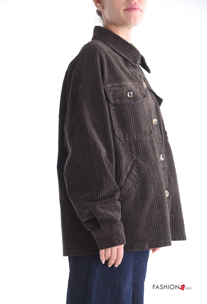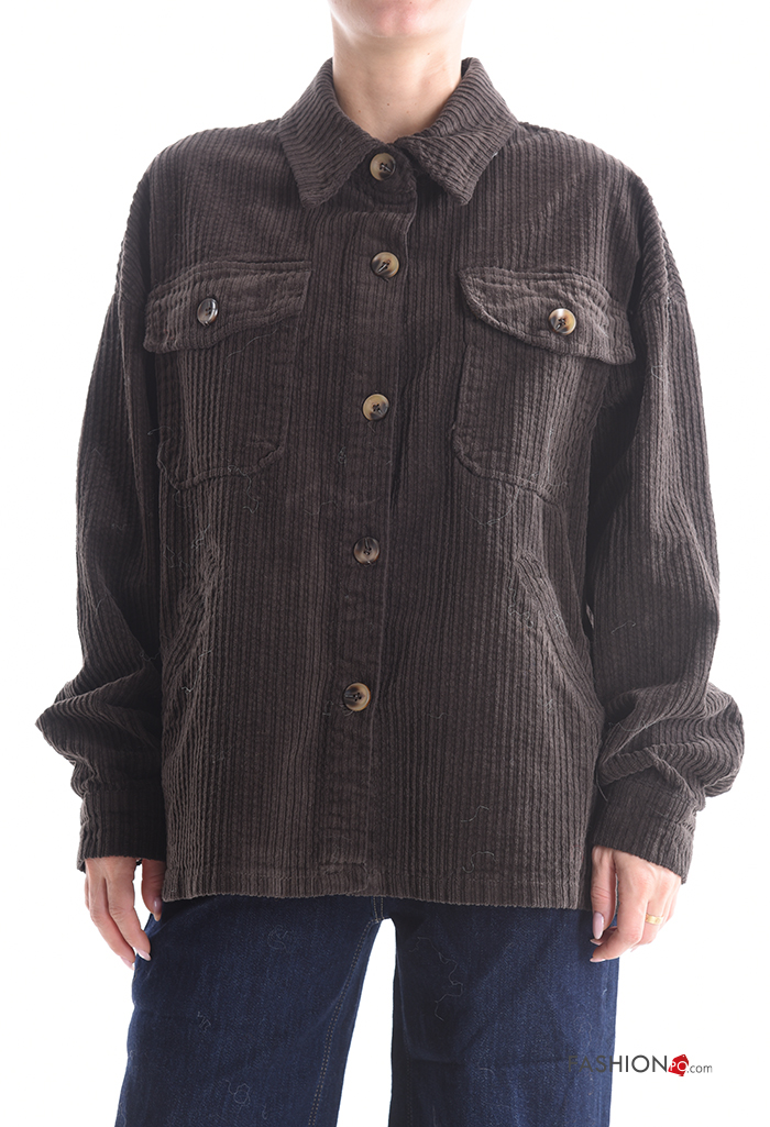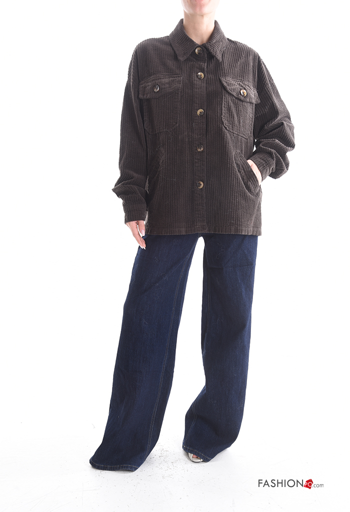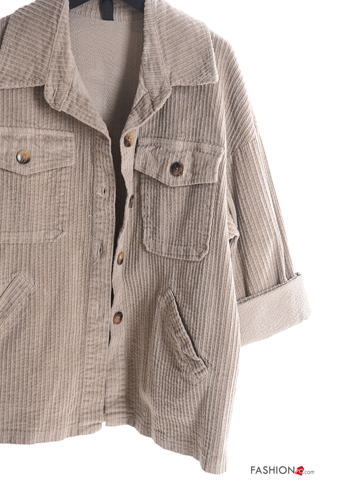 Blusão em Algodão com gola manga comprida em jersey canelado de veludo com botões com bolsos