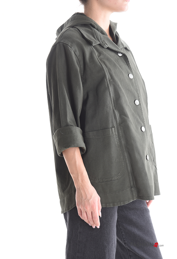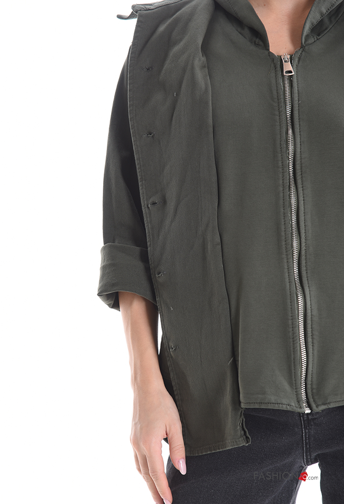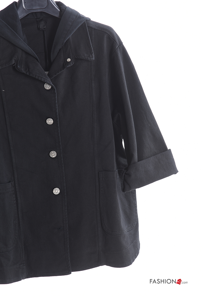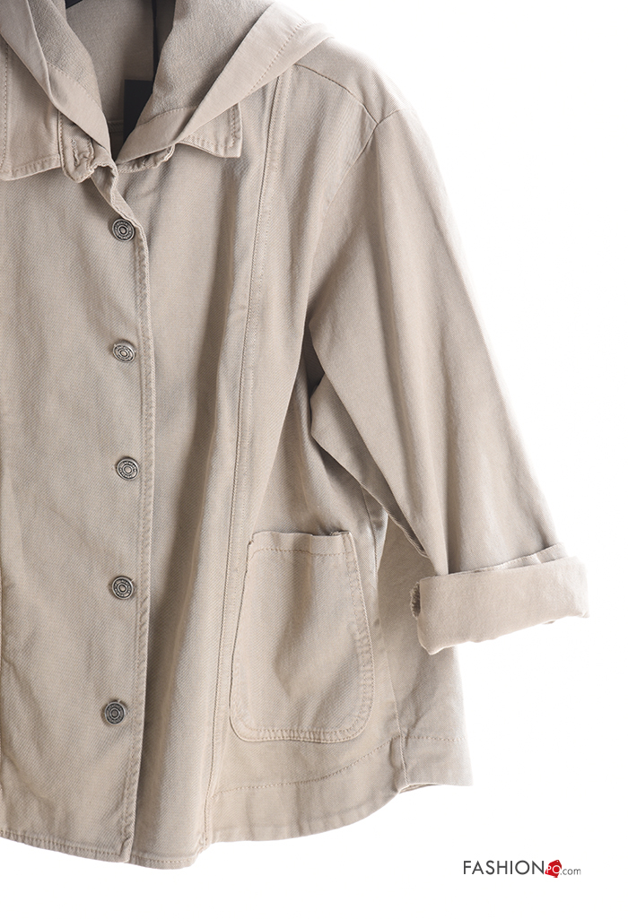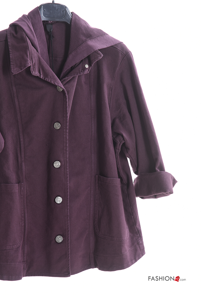 Blusão em Algodão manga comprida com gola com bolsos com botões com capuz