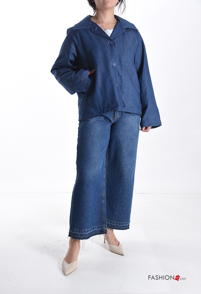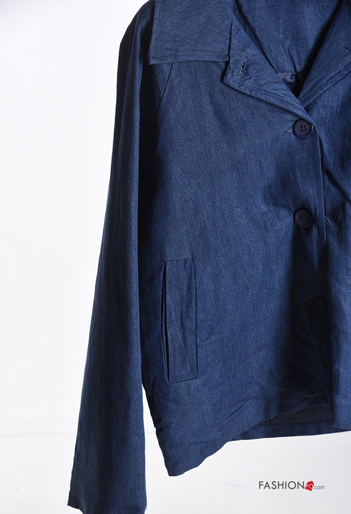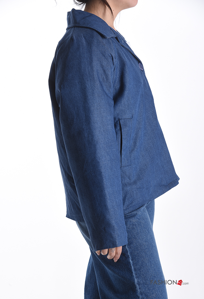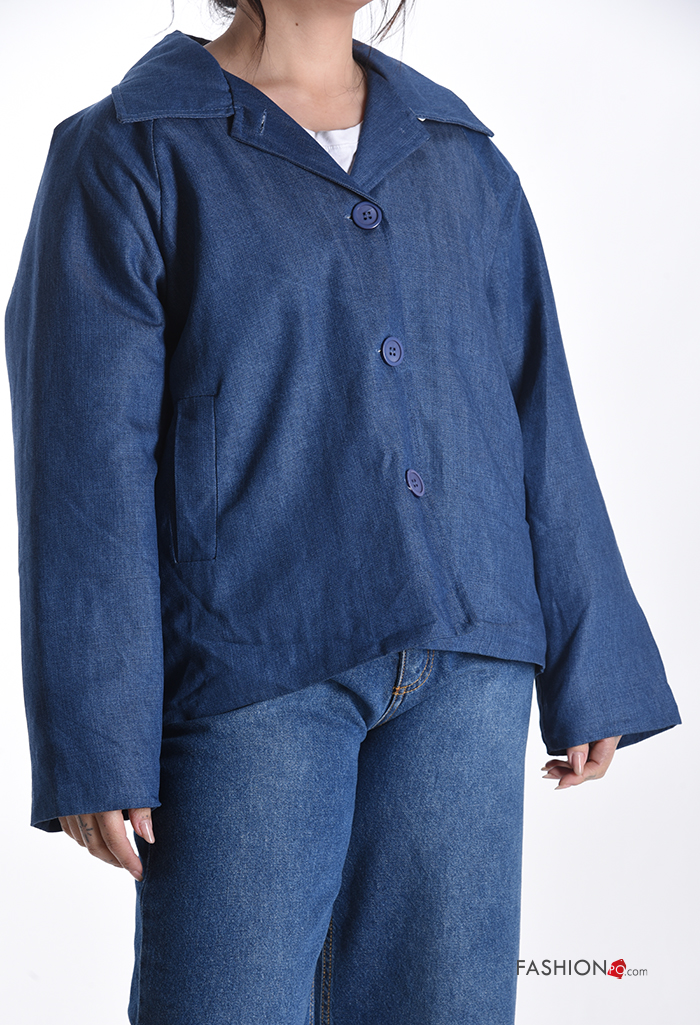 Blusão em Algodão com gola com botões com bolsos com forro