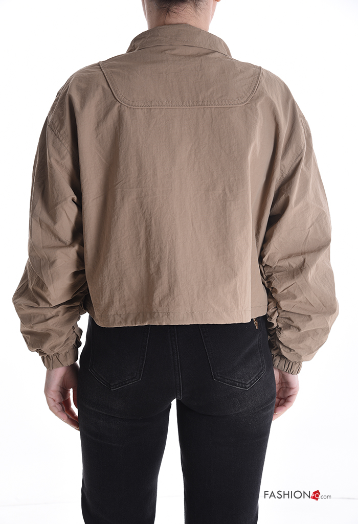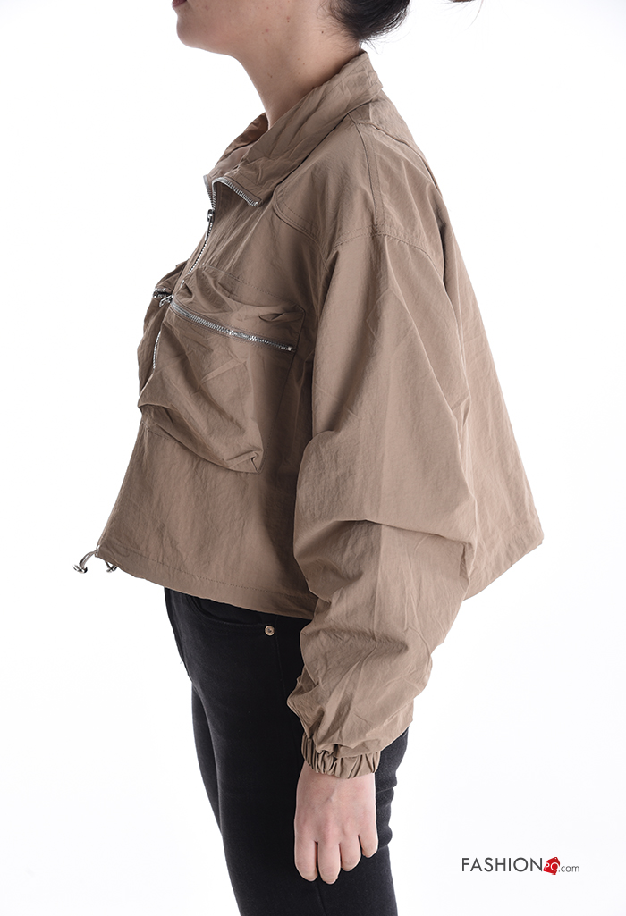 Blusão com gola com forro com fecho com bolsos com cordão