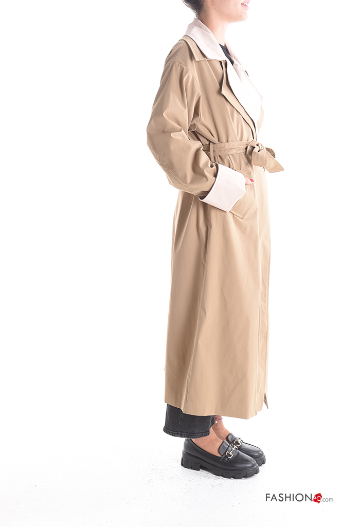 Gabardina manga comprida com cinto com bolsos com forro