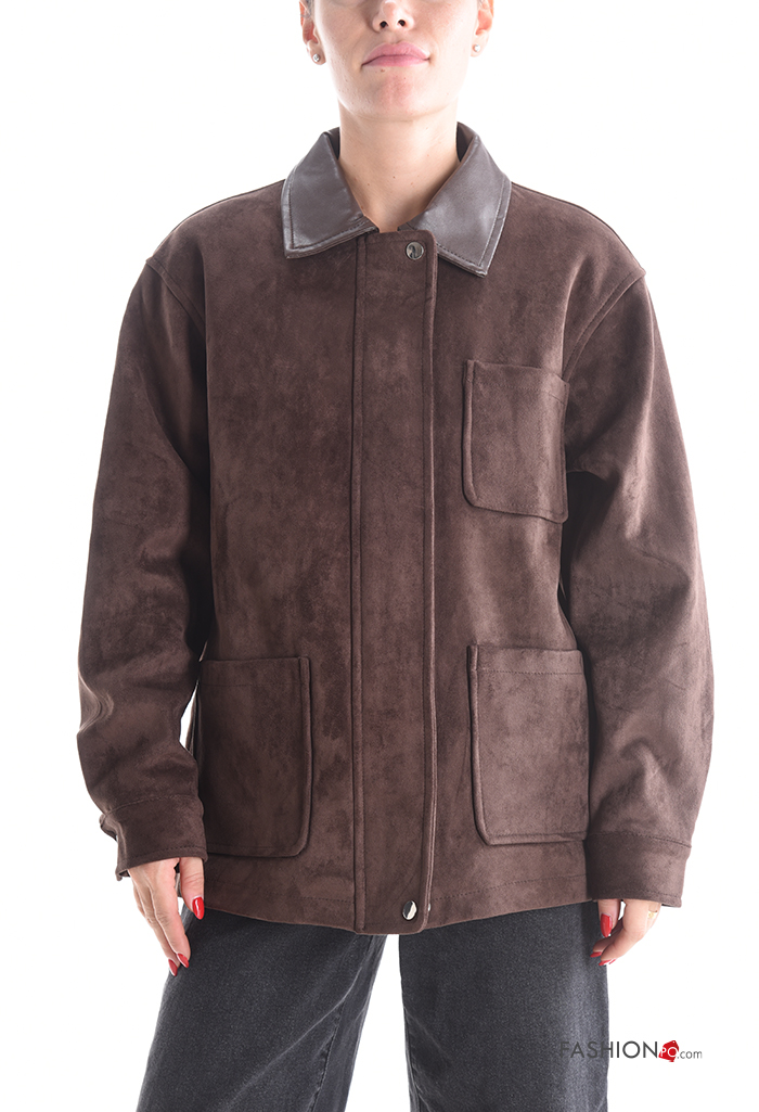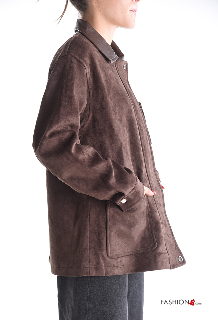Blusão manga comprida com gola com botões com fecho com forro
