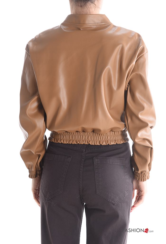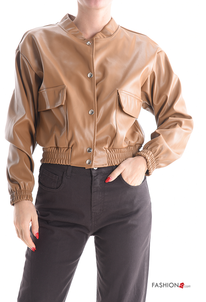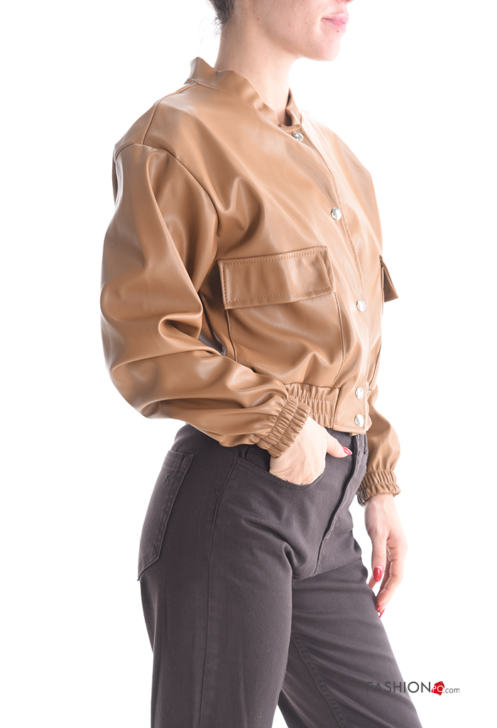 Blusão Motard imitação de couro manga comprida com botões com bolsos com elástico