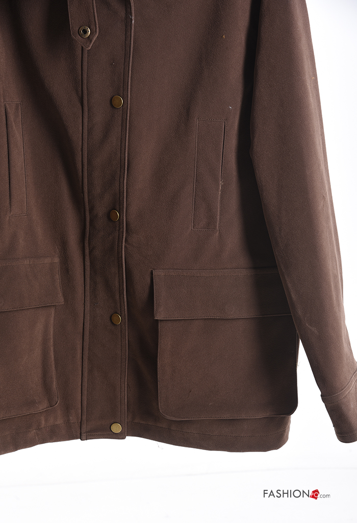 Blusão manga comprida com gola com botões com bolsos