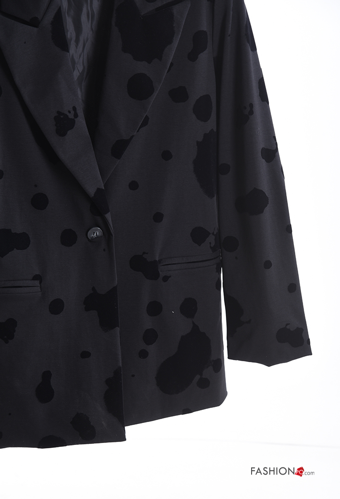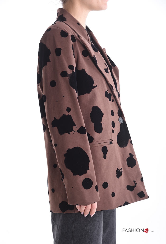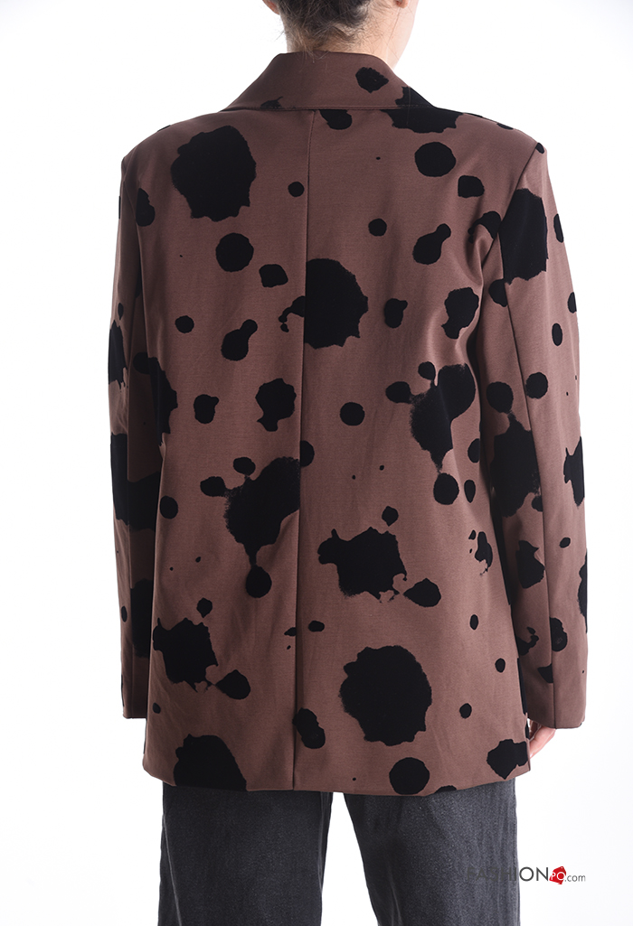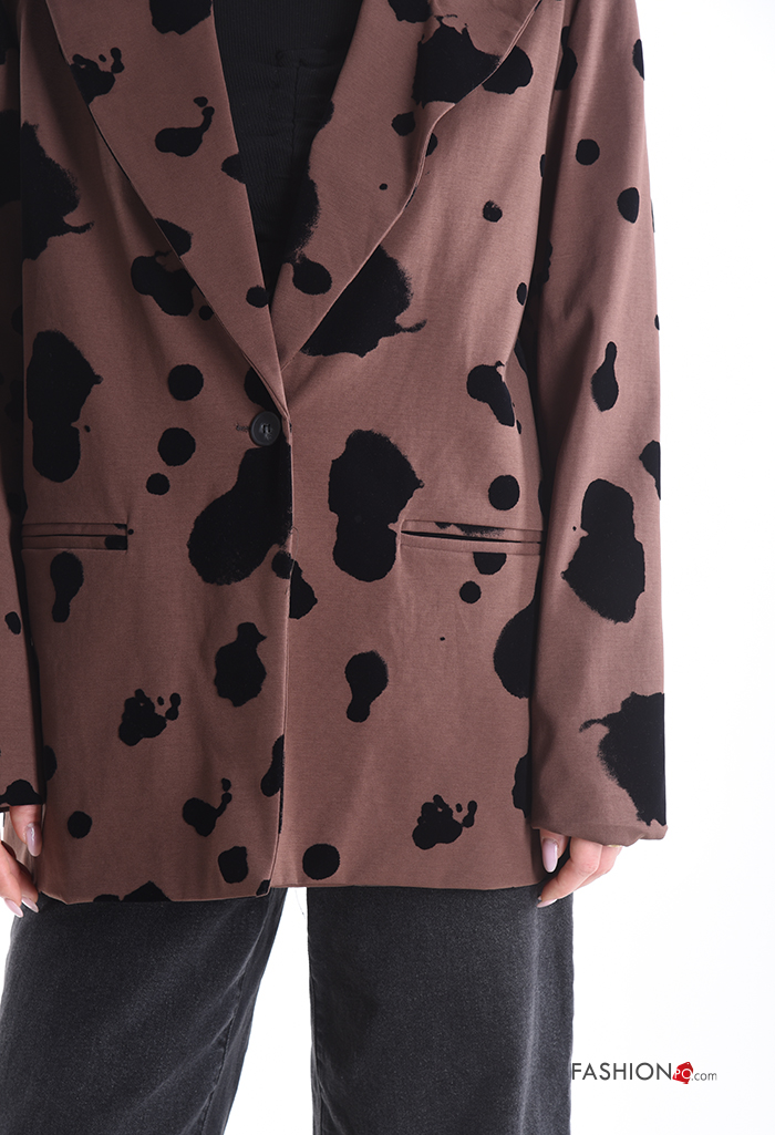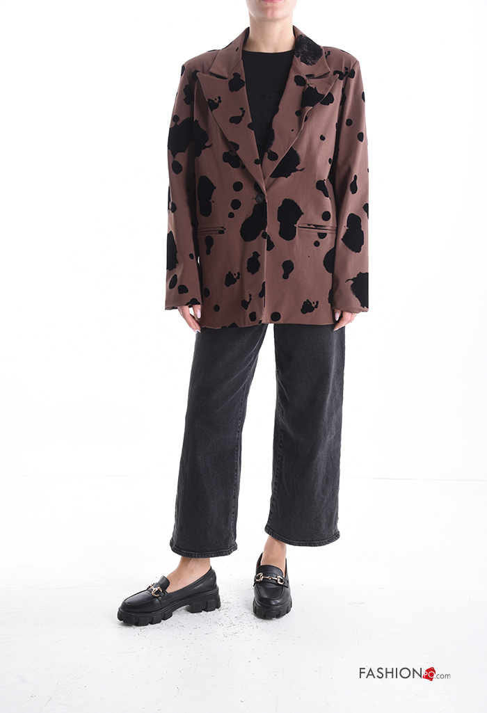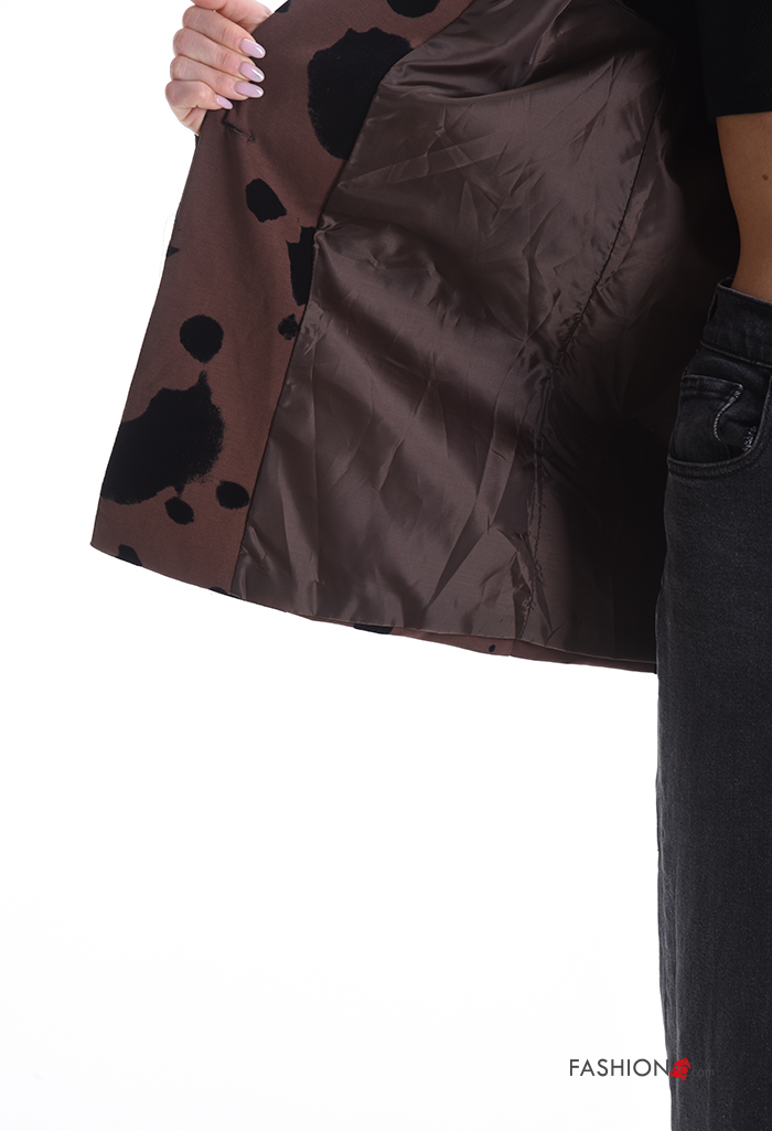 Blazer manga comprida Padrão animal com botões com forro