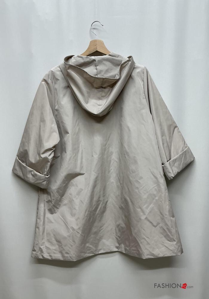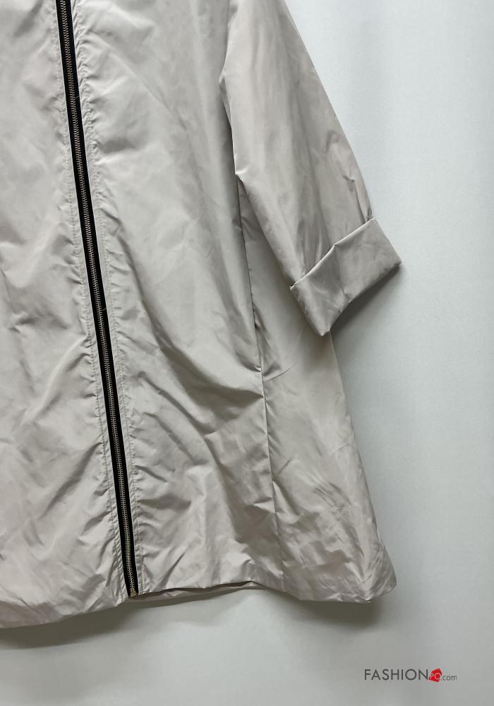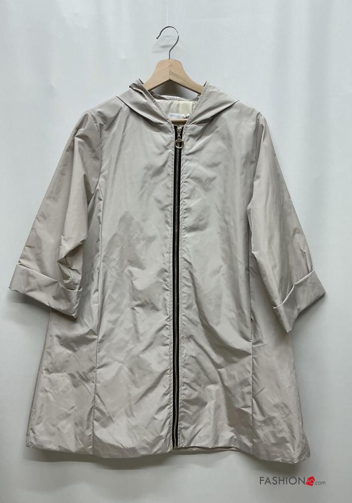 Corta-vento com fecho com capuz manga três quartos