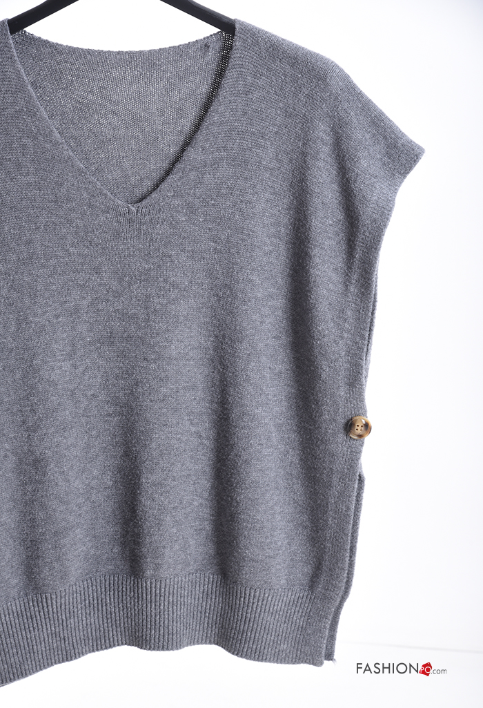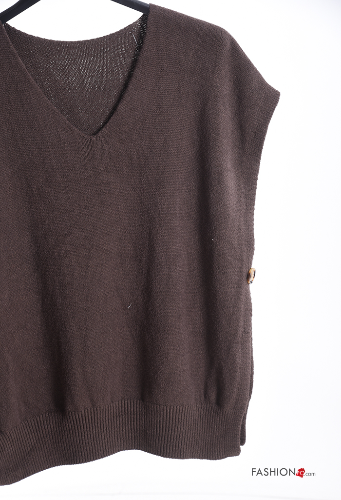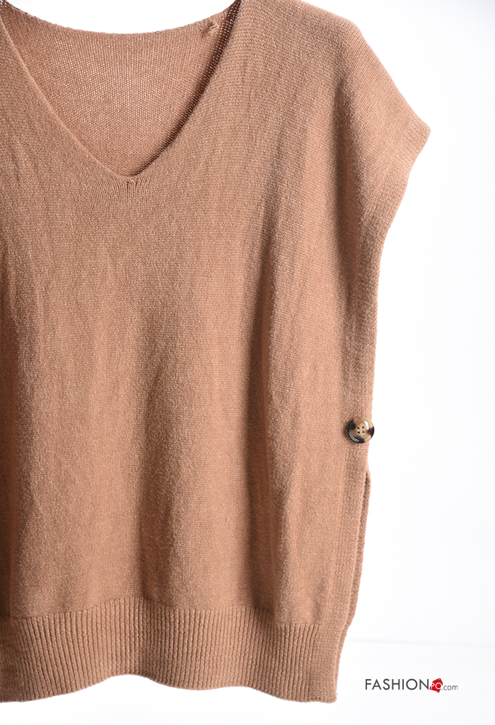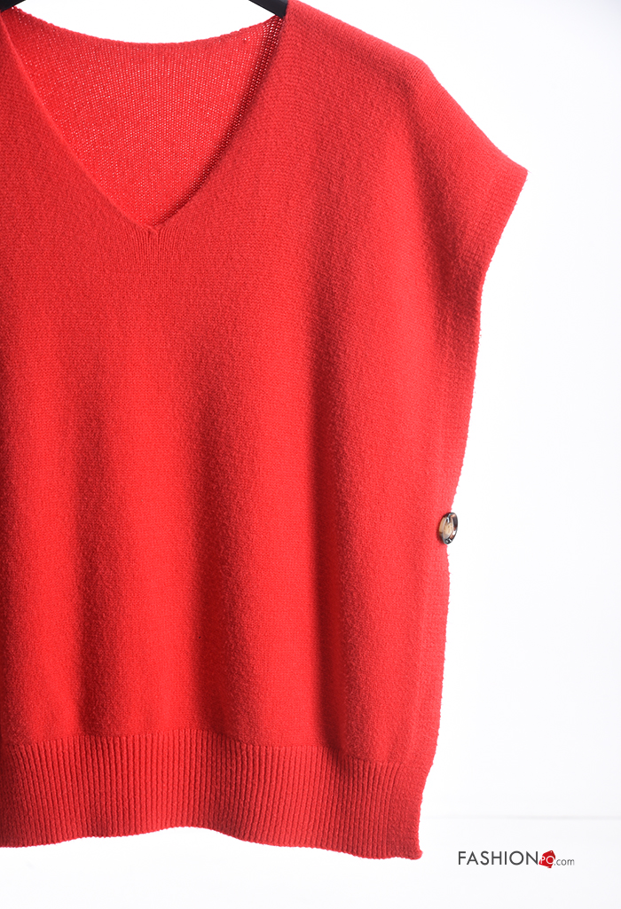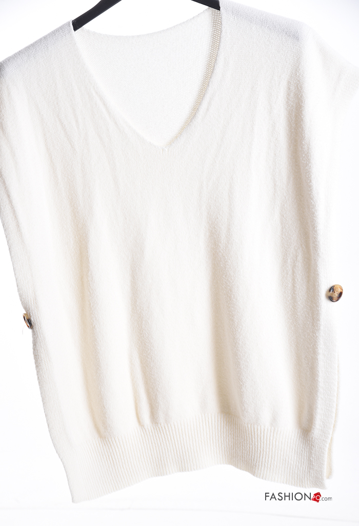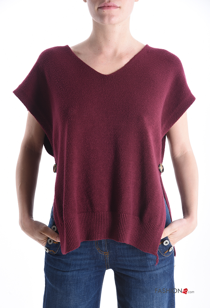 Home > Roupa > Blusões & Casacos > Camisola manga curta com botões gola V com fenda