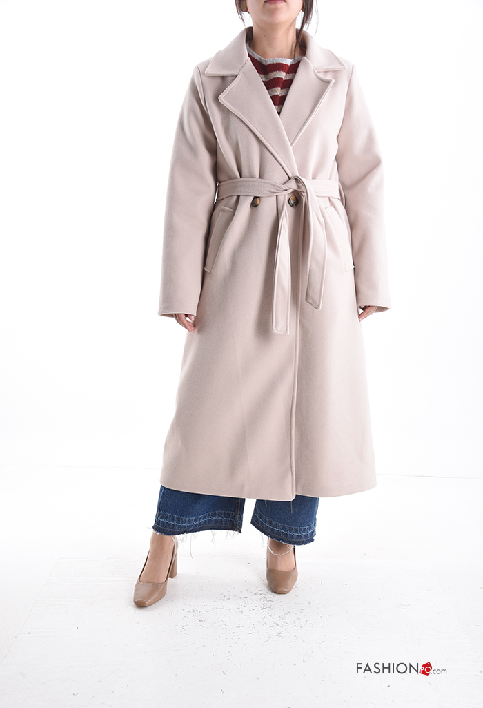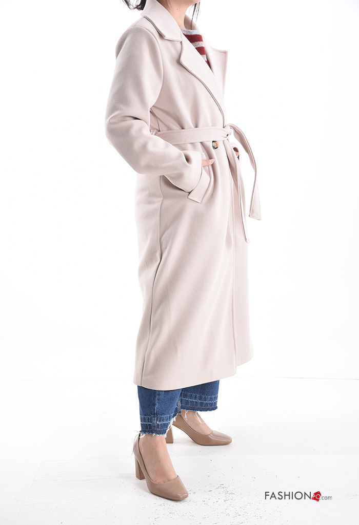 Home > Roupa > Blusões & Casacos > Casaco manga comprida com forro com bolsos com botões com cinto