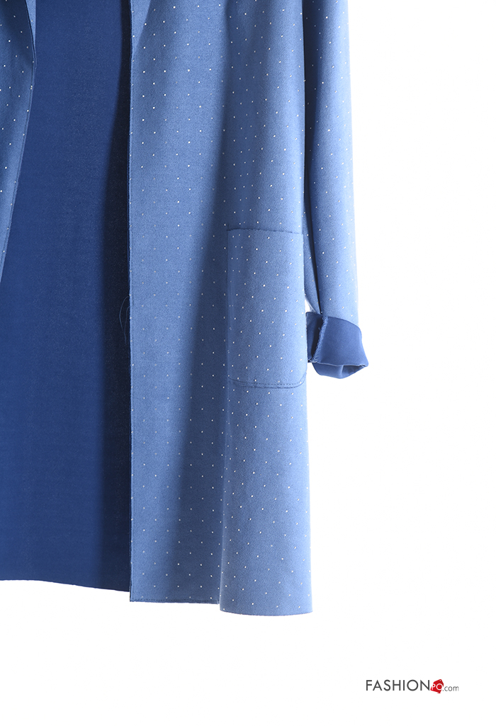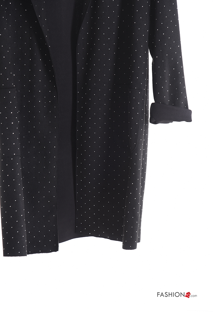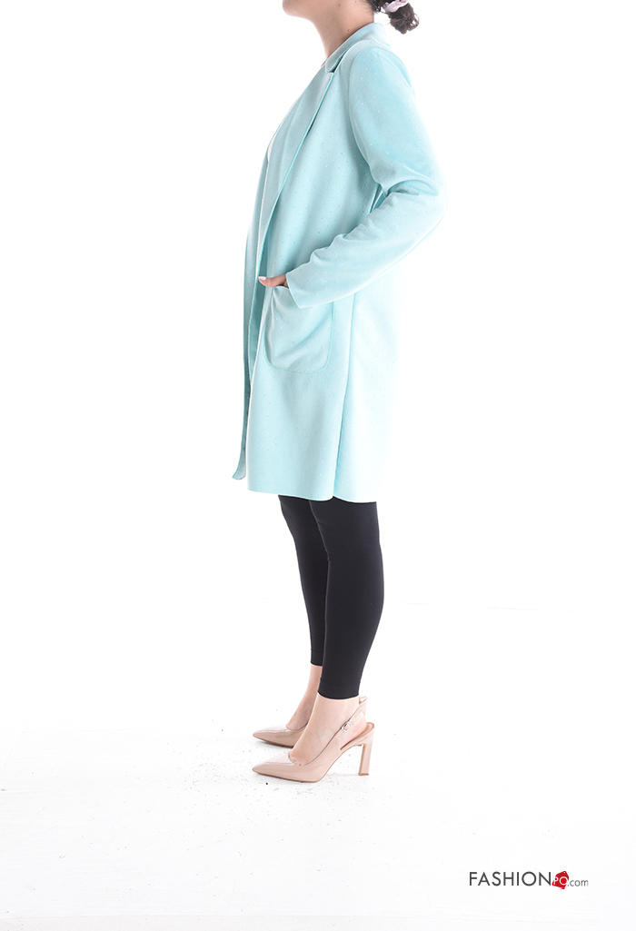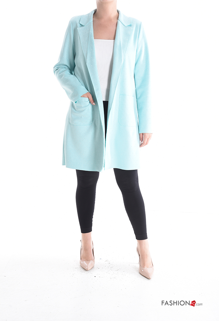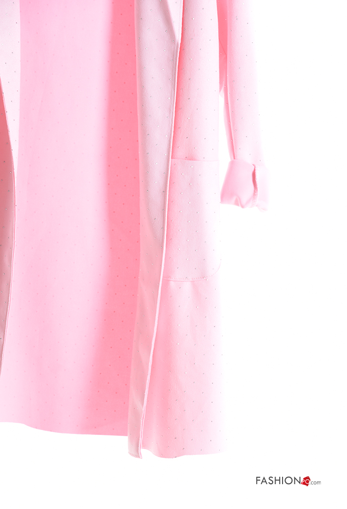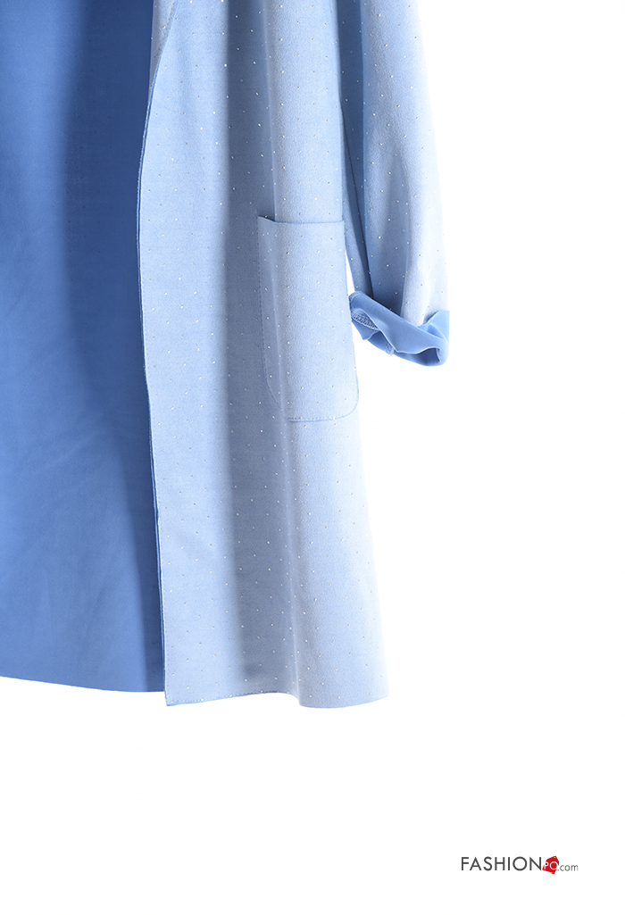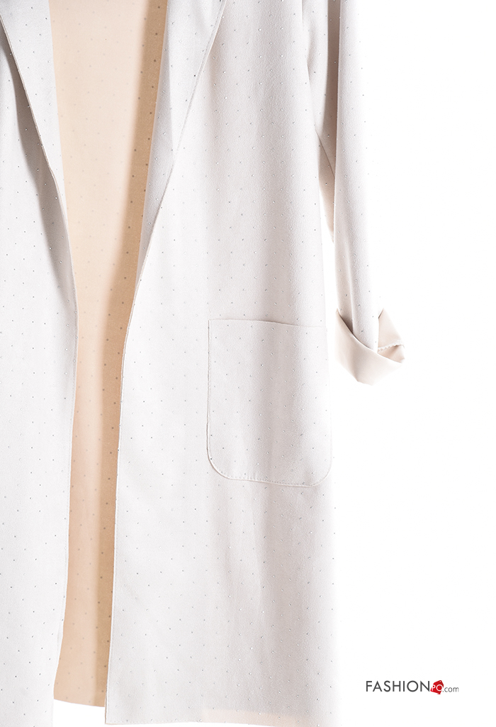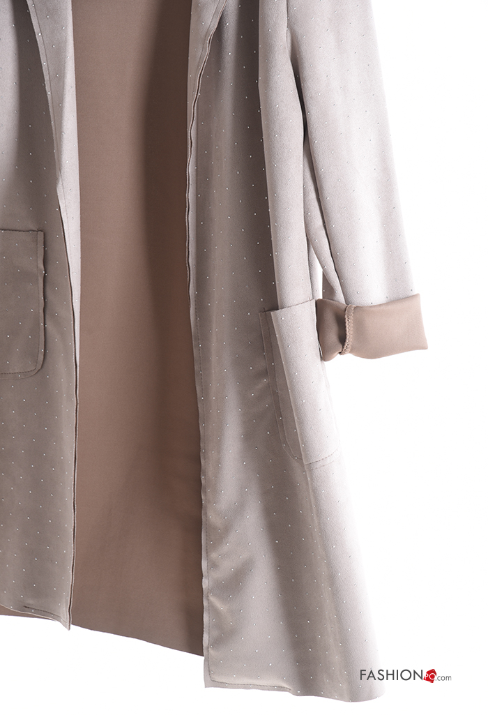Home > Roupa > Blusões & Casacos > Casaco comprido camurça com gola com bolsos com strass sem forro