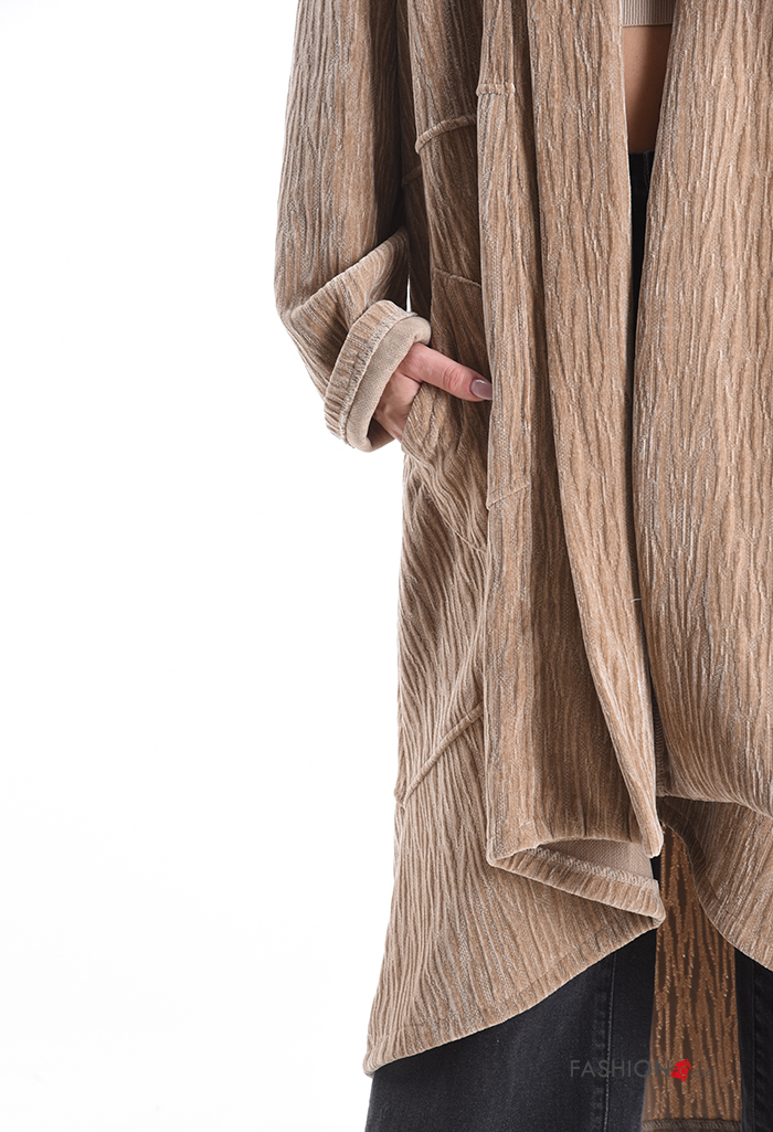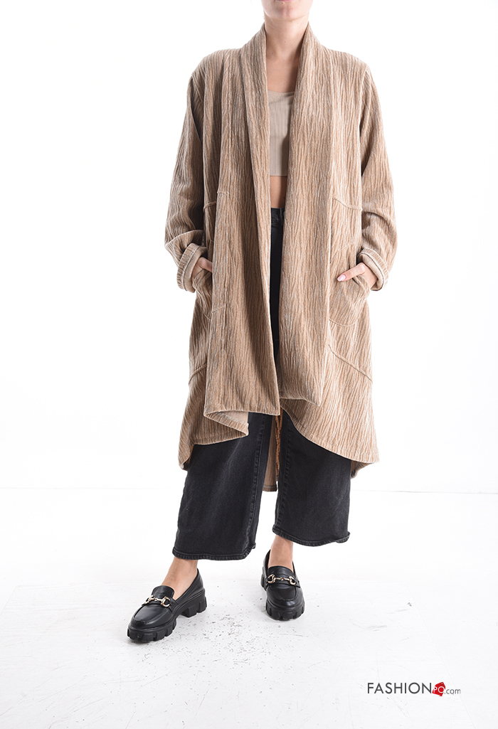 Casaco comprido de veludo oversize com bolsos
