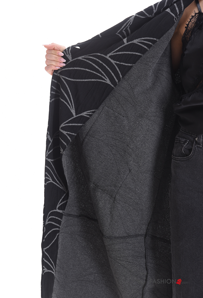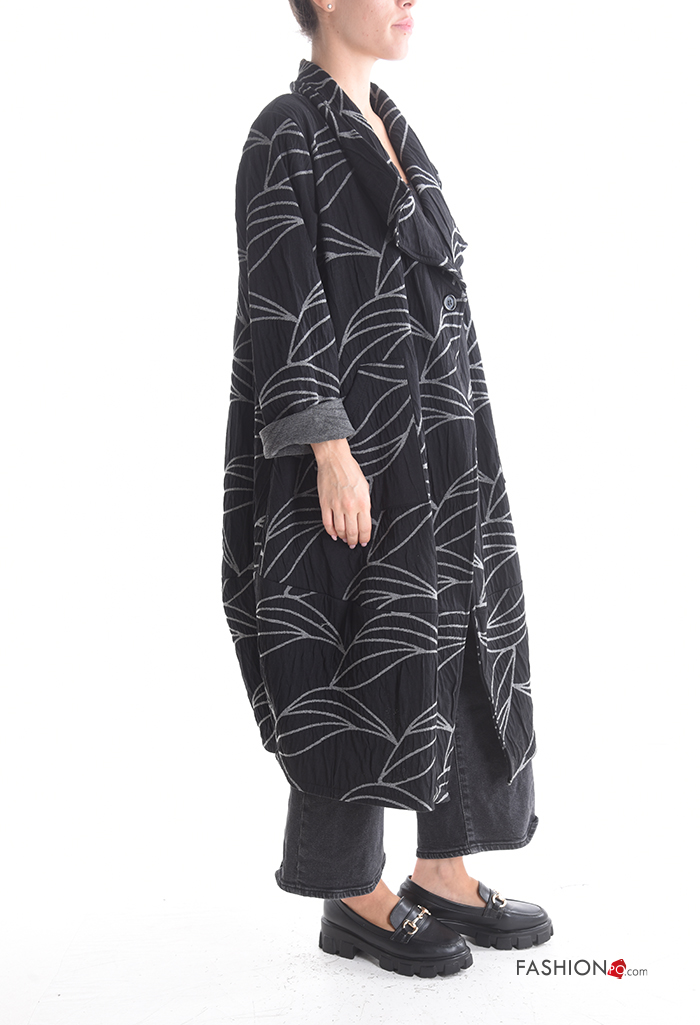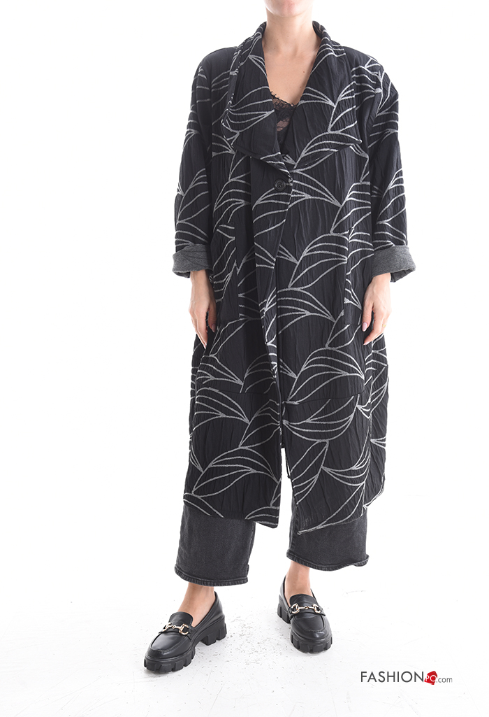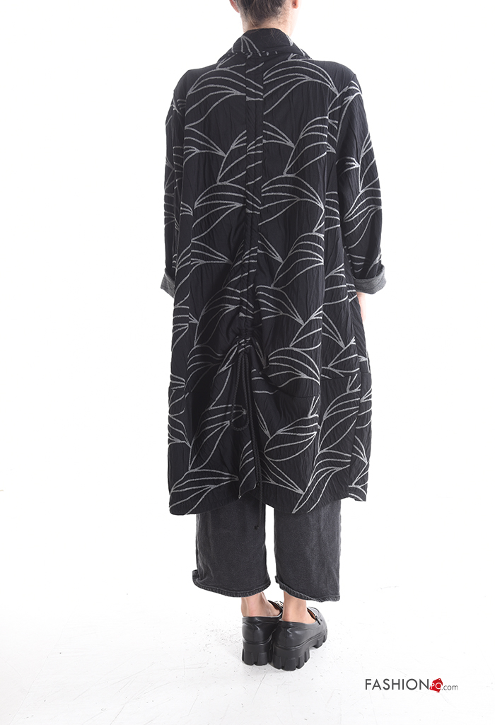 Casaco comprido em Algodão com gola Estampado folhas com bolsos com cordão