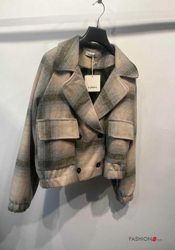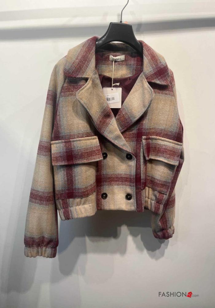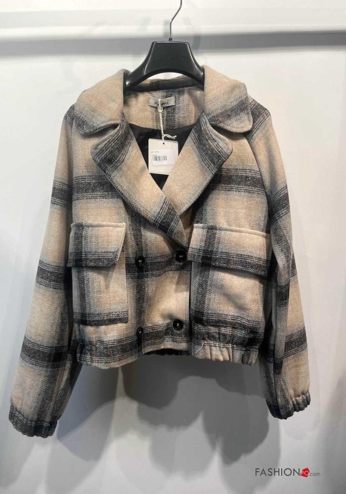 Casaco manga comprida Padrão Tartan com botões com forro