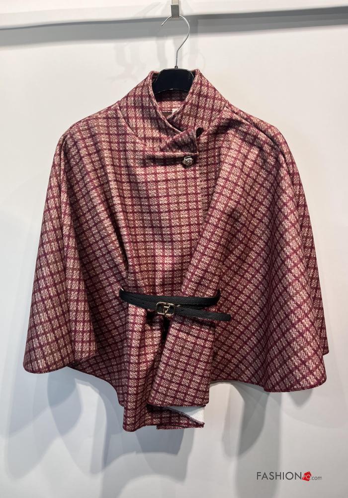 Capa Padrão Tartan com cinto com botões manga três quartos