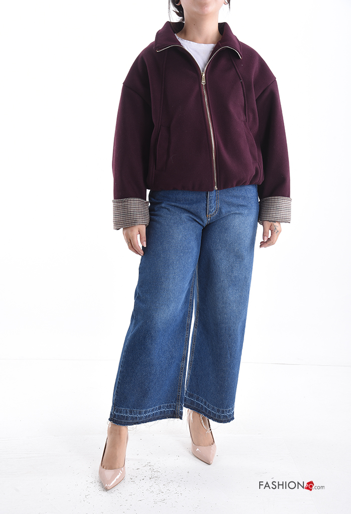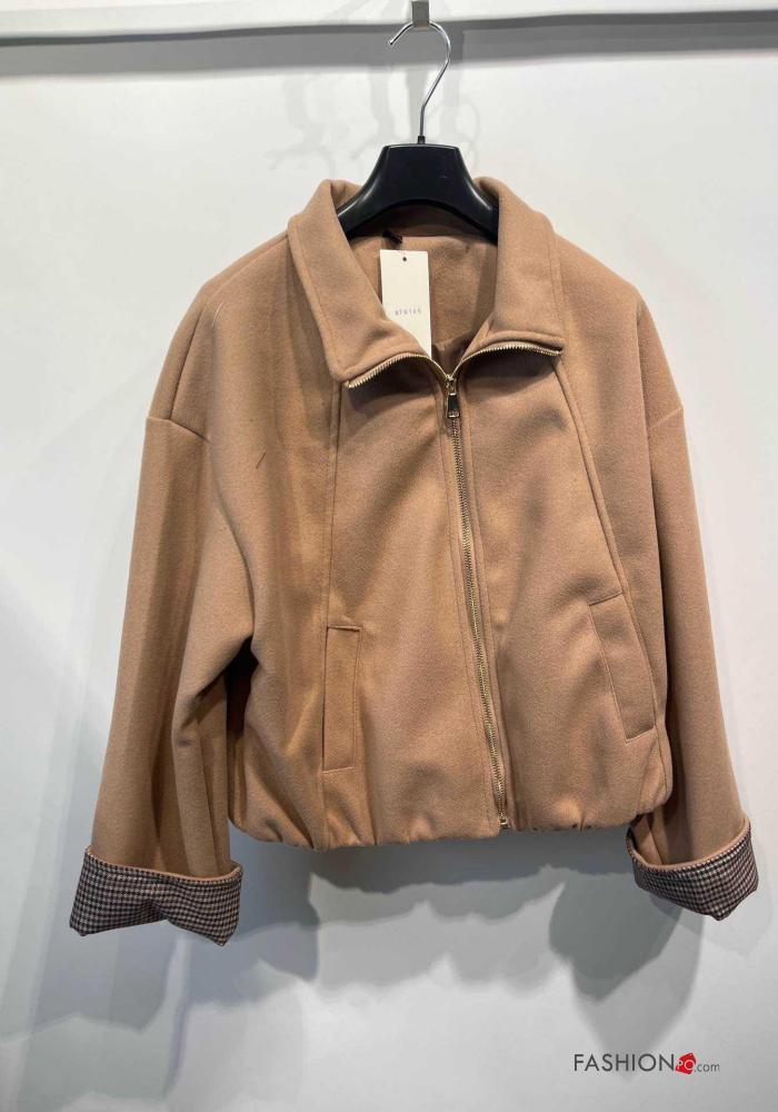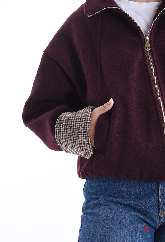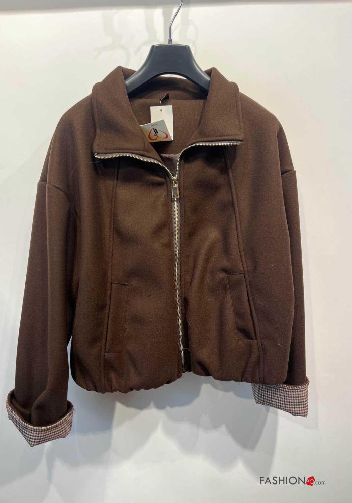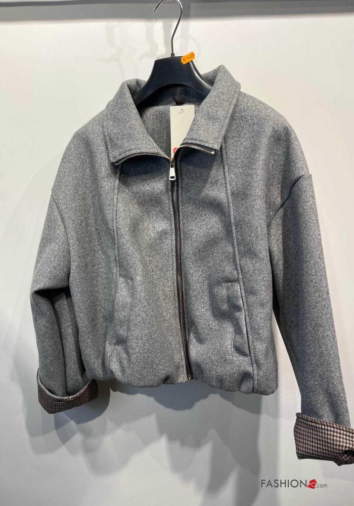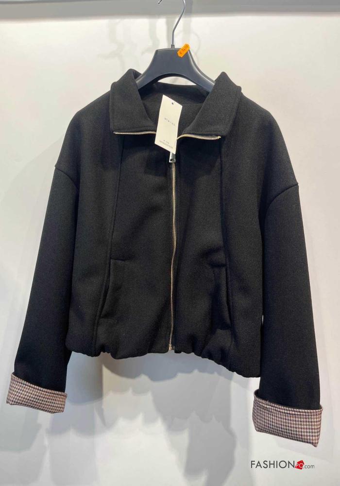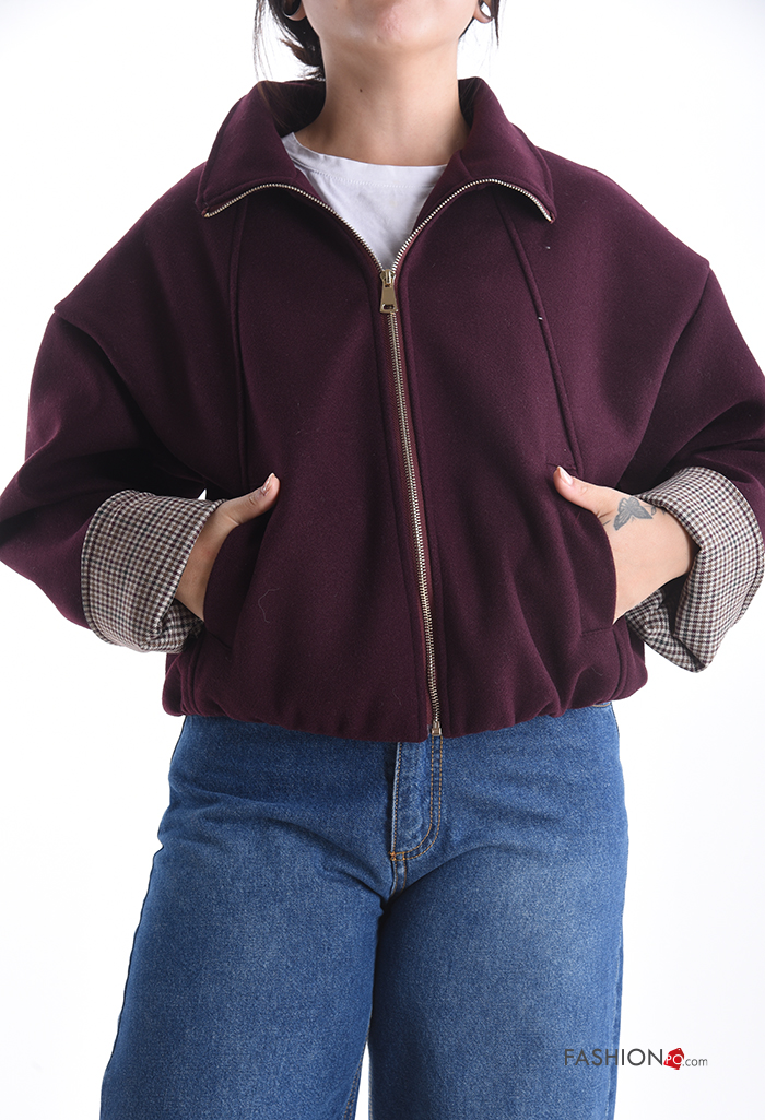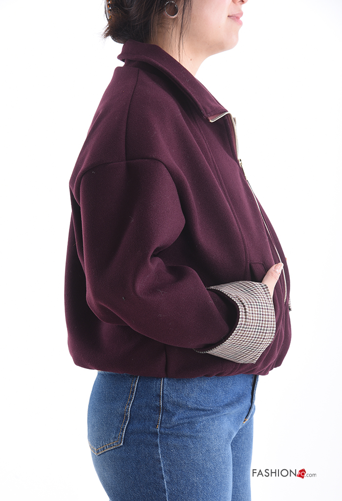 Blusão Bomber manga comprida com gola com forro com fecho com bolsos com elástico