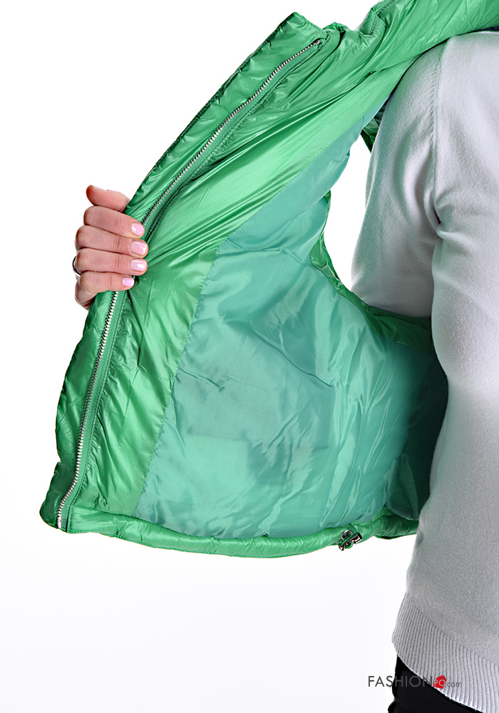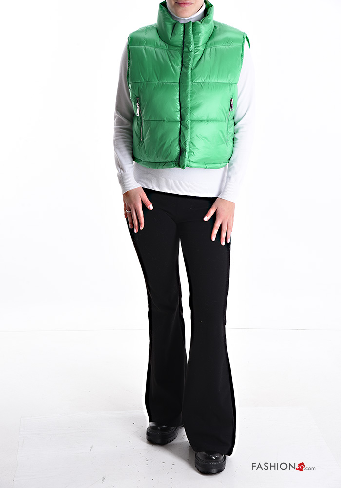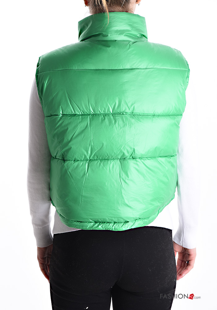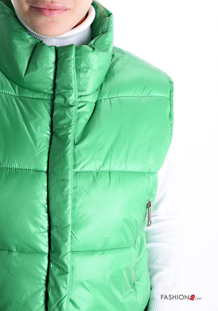 Colete acolchoado com bolsos com gola subida com fecho