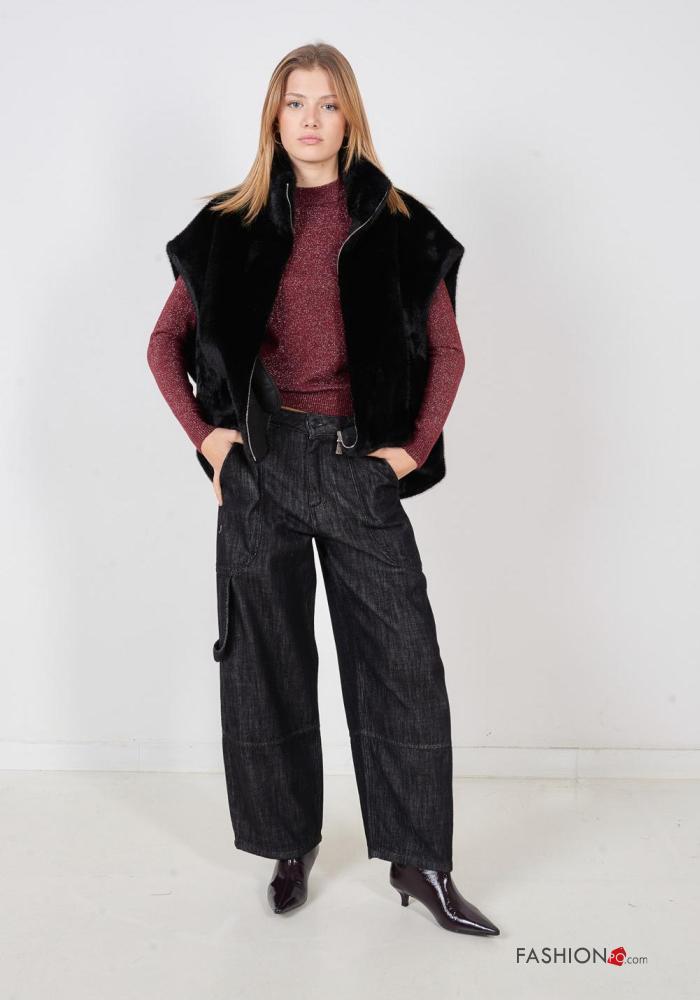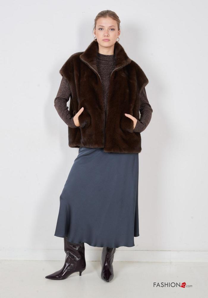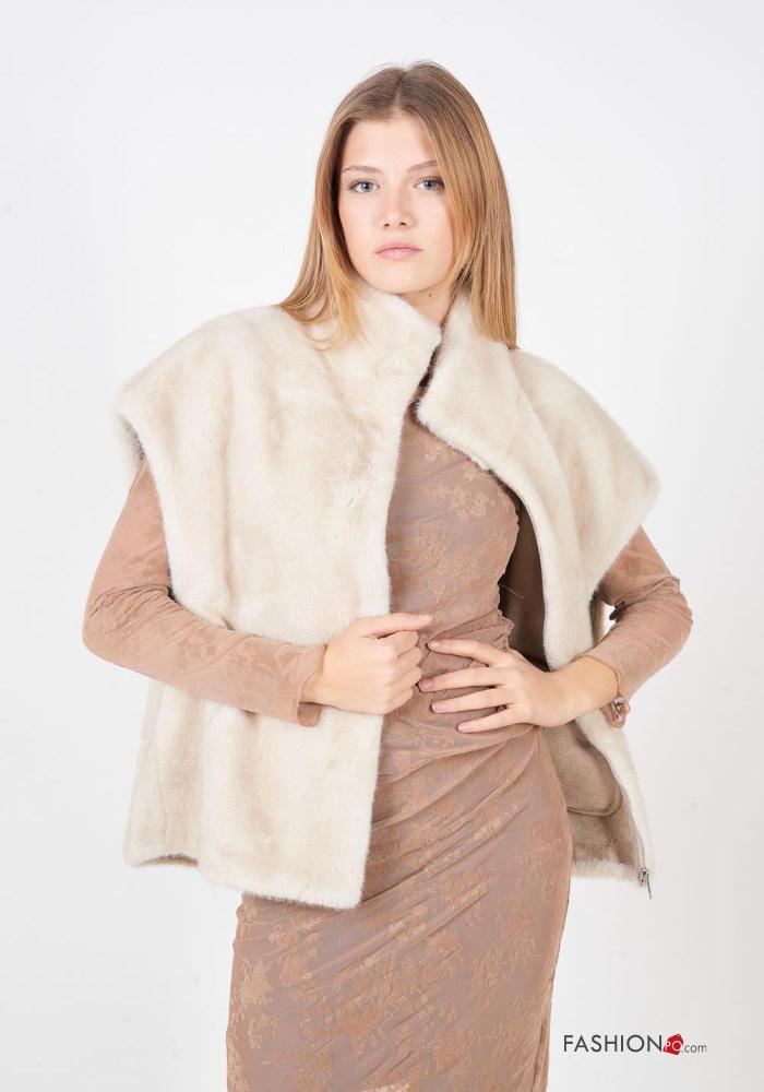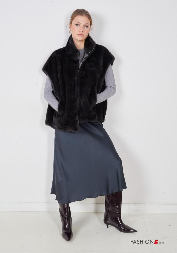 Home > Roupa > Blusões & Casacos > Colete pelo sintético com bolsos com gola subida com fecho