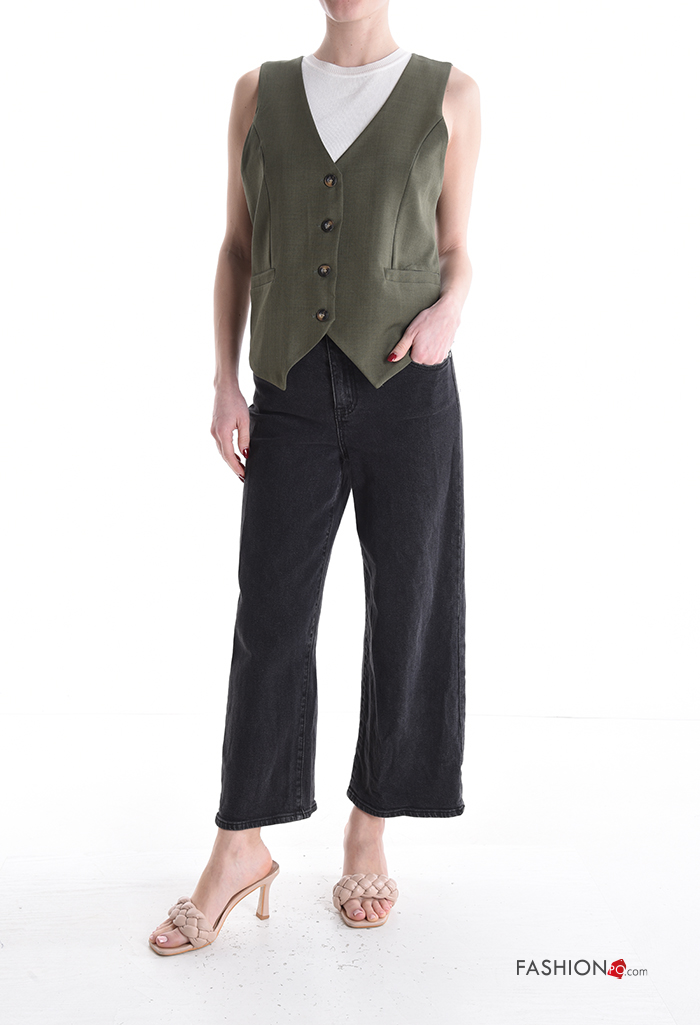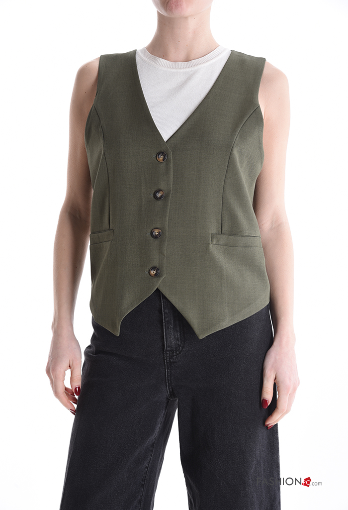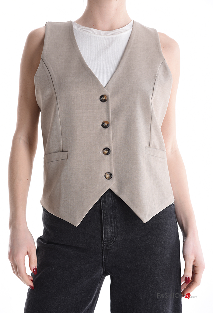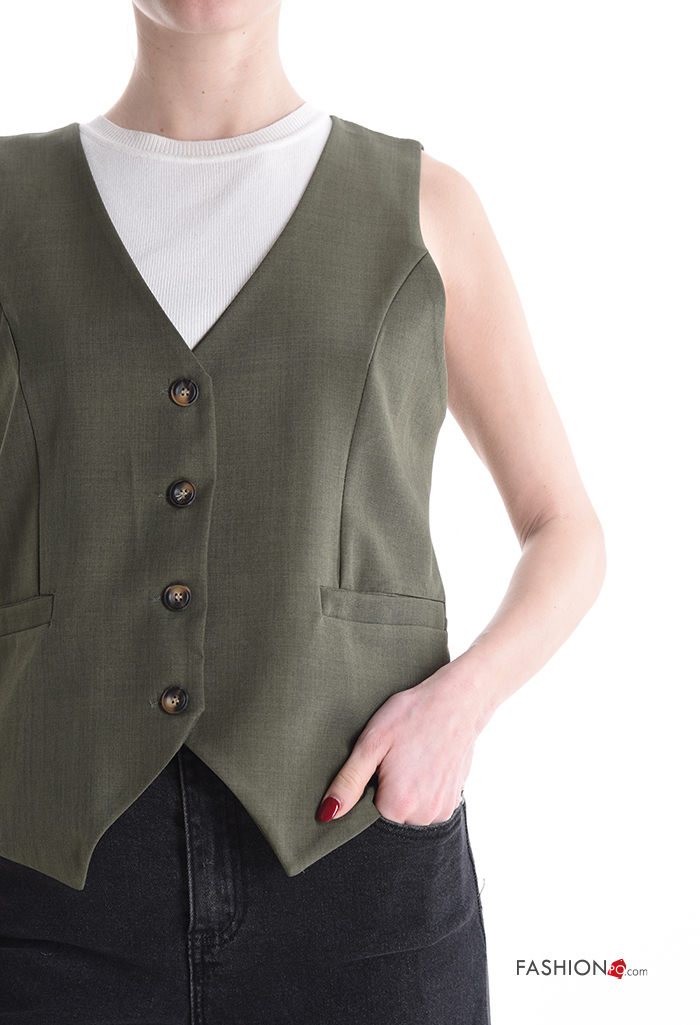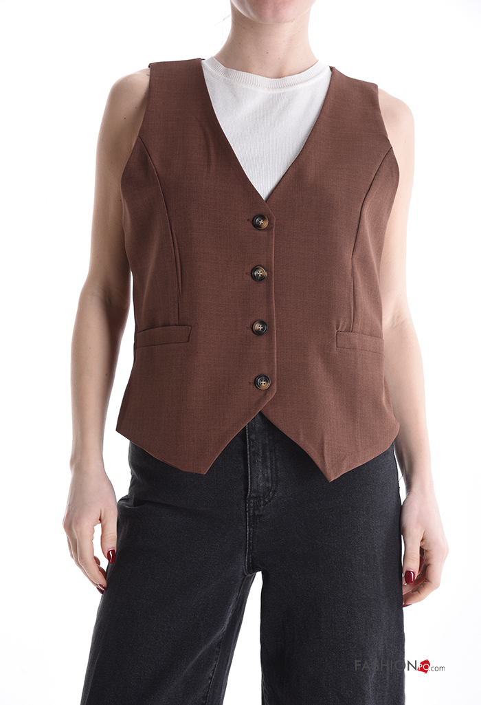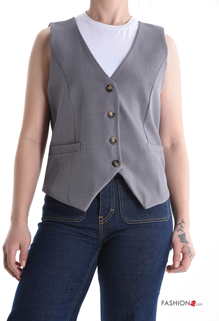 Home > Roupa > Blusões & Casacos > Colete com botões gola V com forro