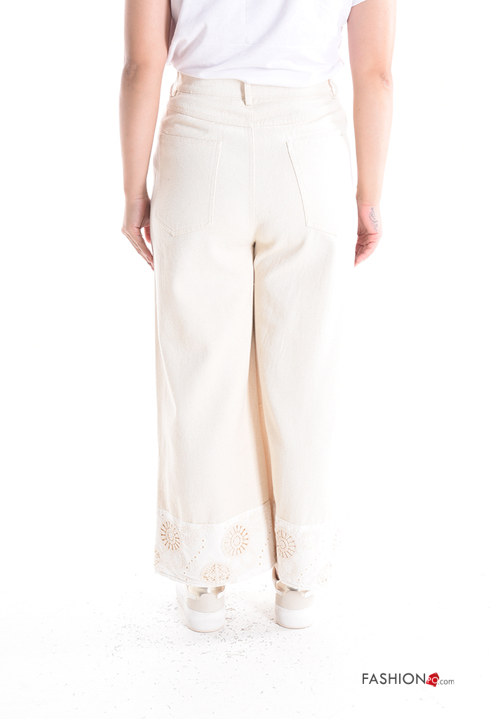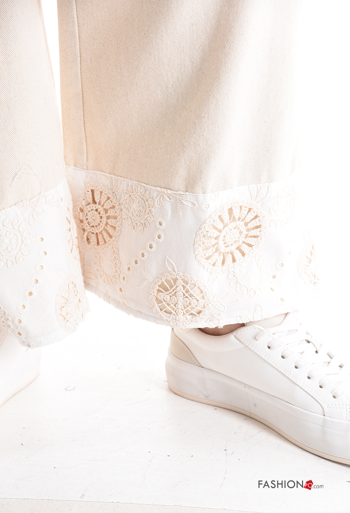 Home > Roupa > Calças > Calças em Algodão Padrão bordado com bolsos com botões com fecho