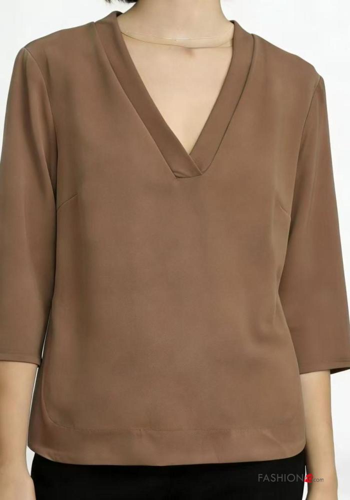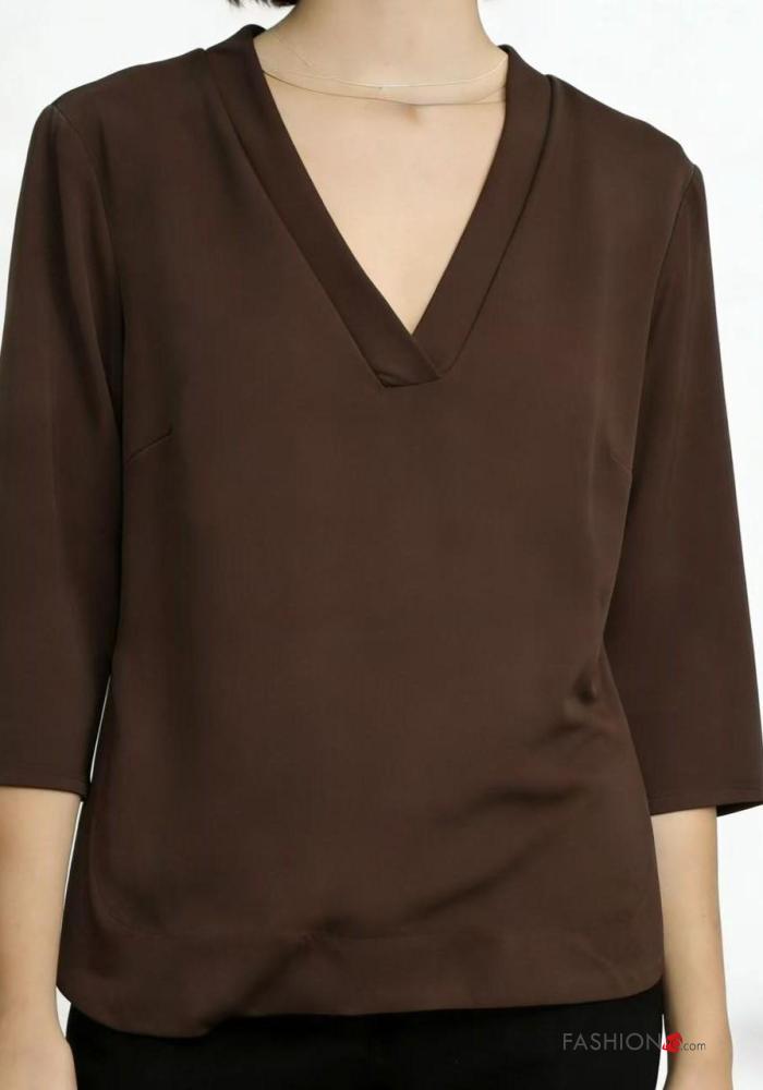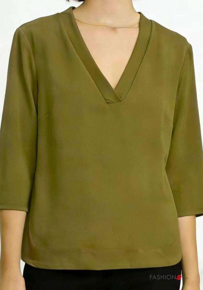 Home > Roupa > Camisas & Blusas > Blusa gola V manga três quartos