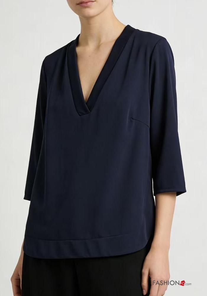 Blusa gola V manga três quartos