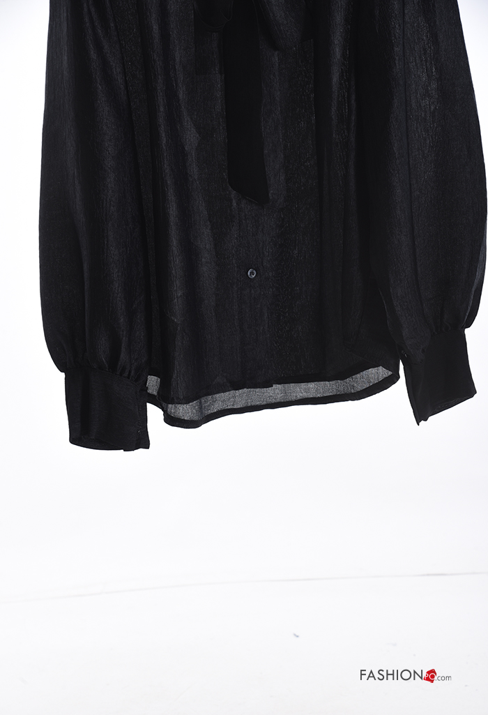 Camisa manga comprida com botões com laço