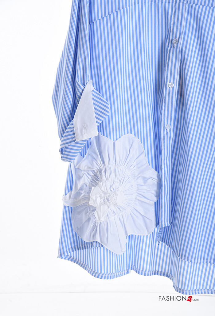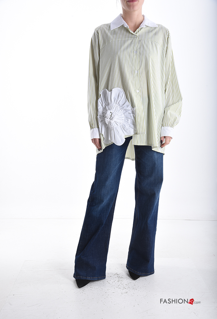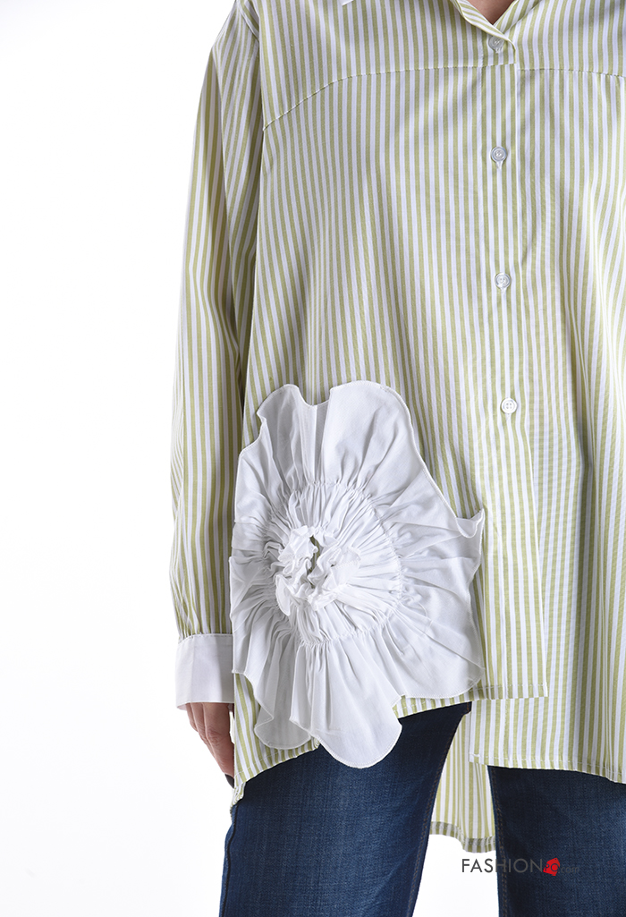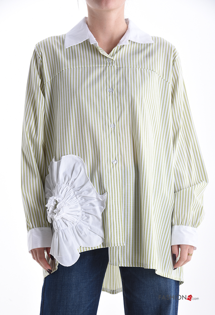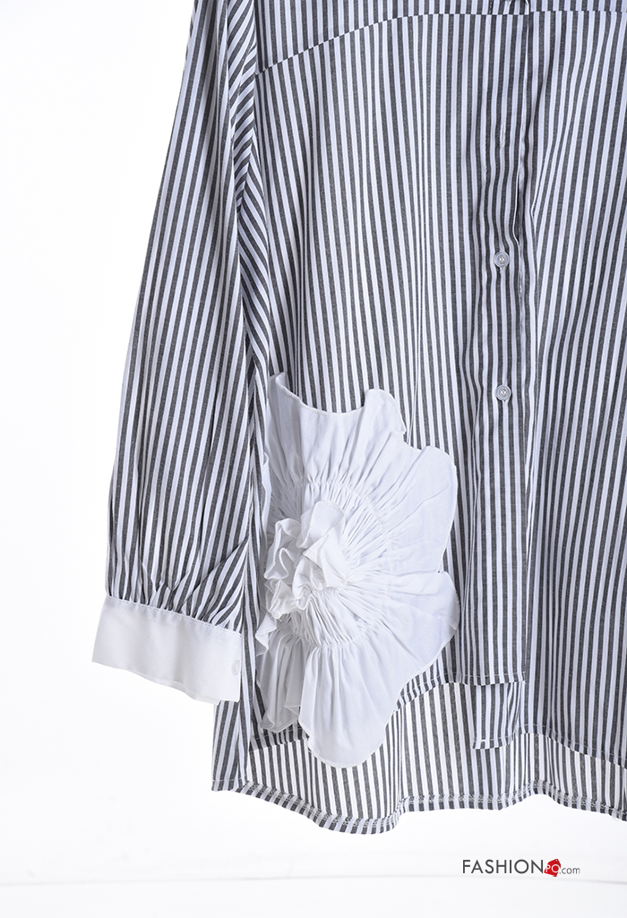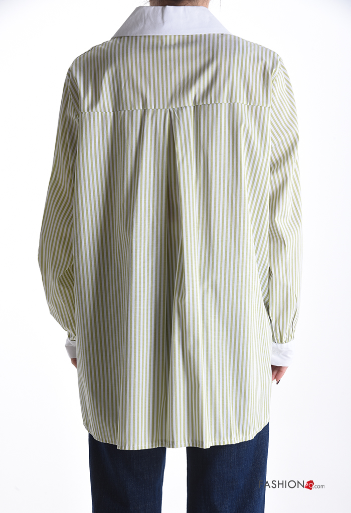 Camisa em Algodão oversize manga comprida com gola às riscas com botões