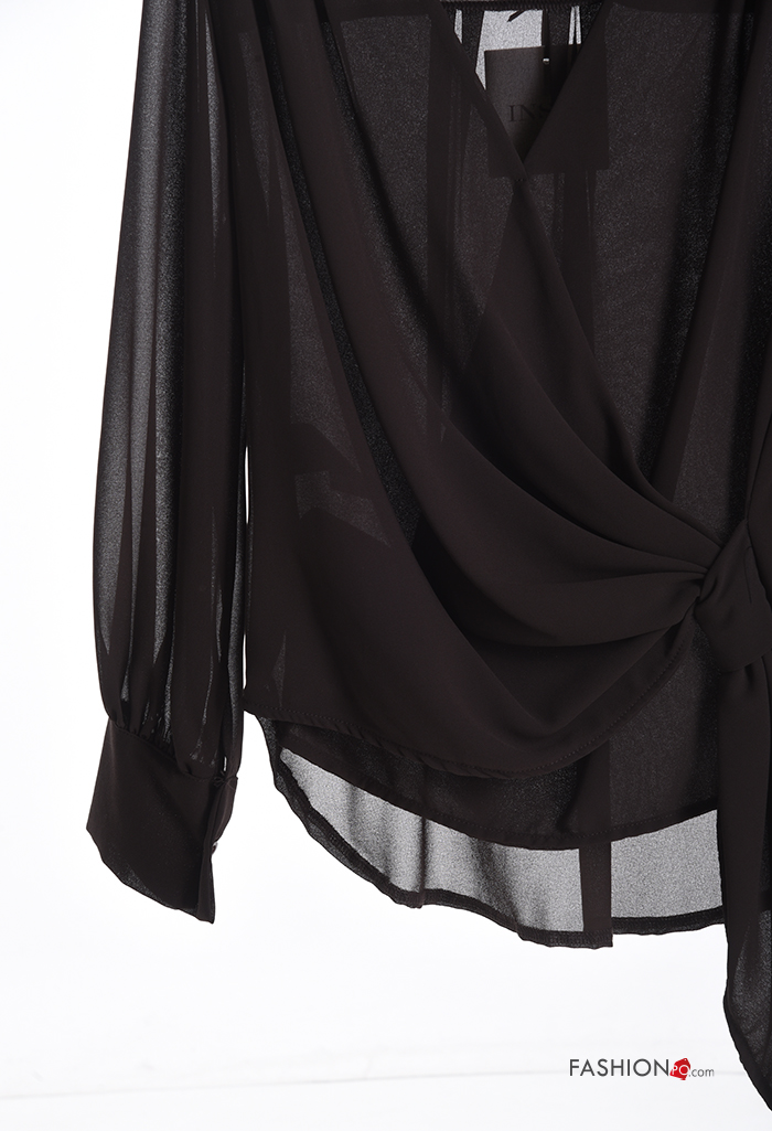 Home > Roupa > Camisas & Blusas > Blusa manga comprida gola V com nó