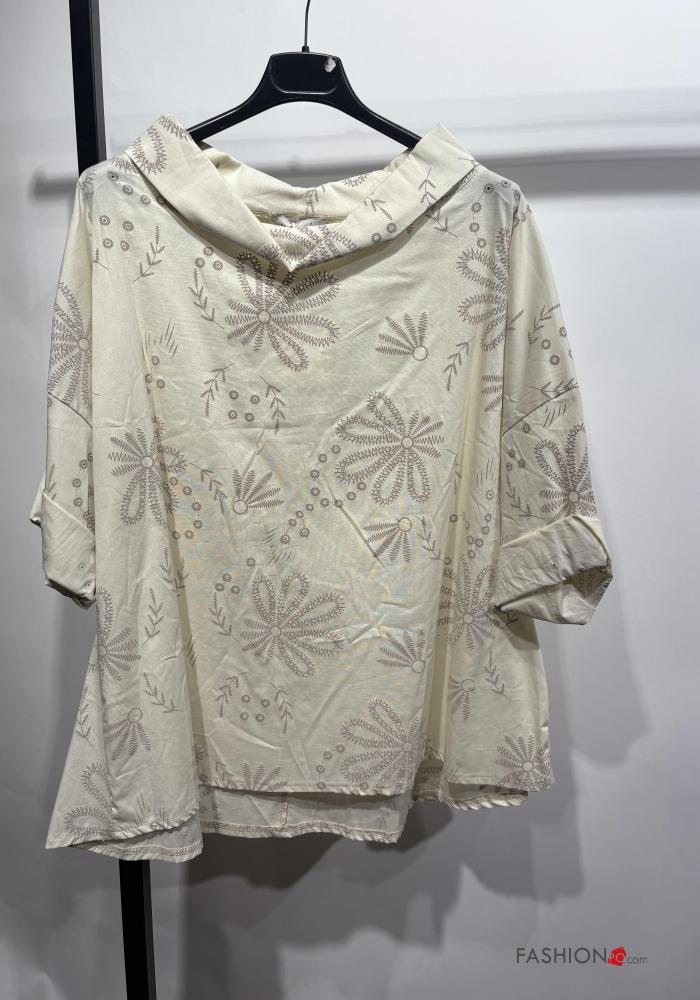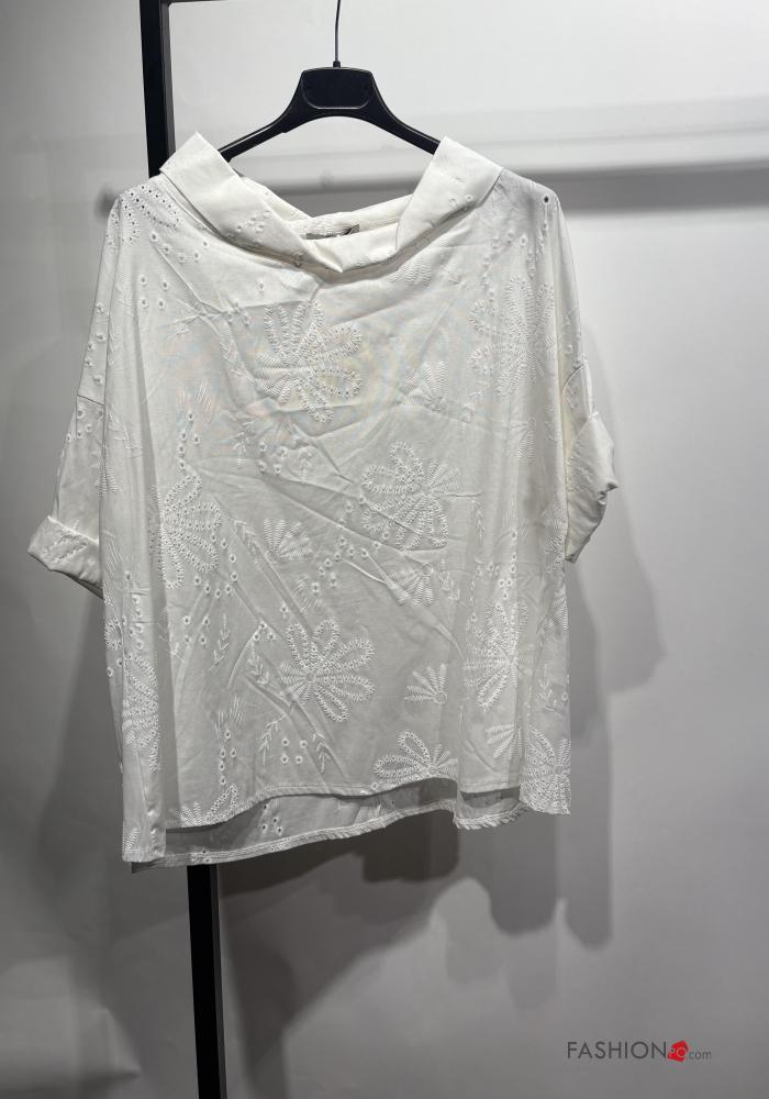 Home > Roupa > Camisas & Blusas > Túnica em Algodão manga comprida com gola Padrão bordado bordado inglês